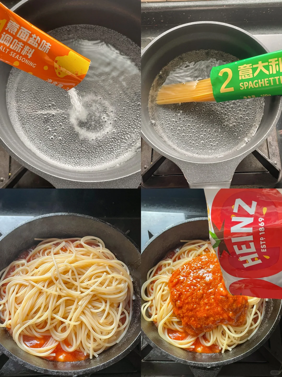 2️⃣锅里水沸后加入盐味调味料,下意面煮10分钟