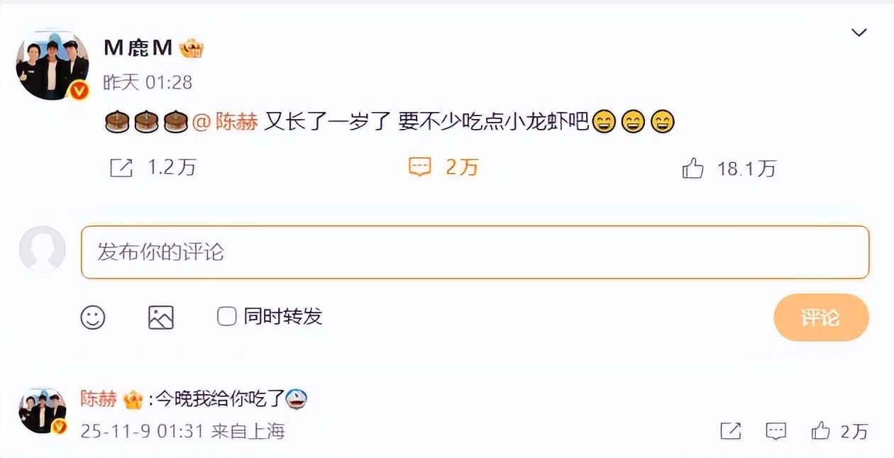 然而,所有人的目光都聚焦在照片后排一个模糊的身影上——鹿晗。由于光线原因,他的面部几乎完全隐藏在阴影中,只有浅金色的发丝若隐若现。这条状态发布后,陈赫在评论区幽默留言,称自己“找了一晚上这照片里的小鹿”。
