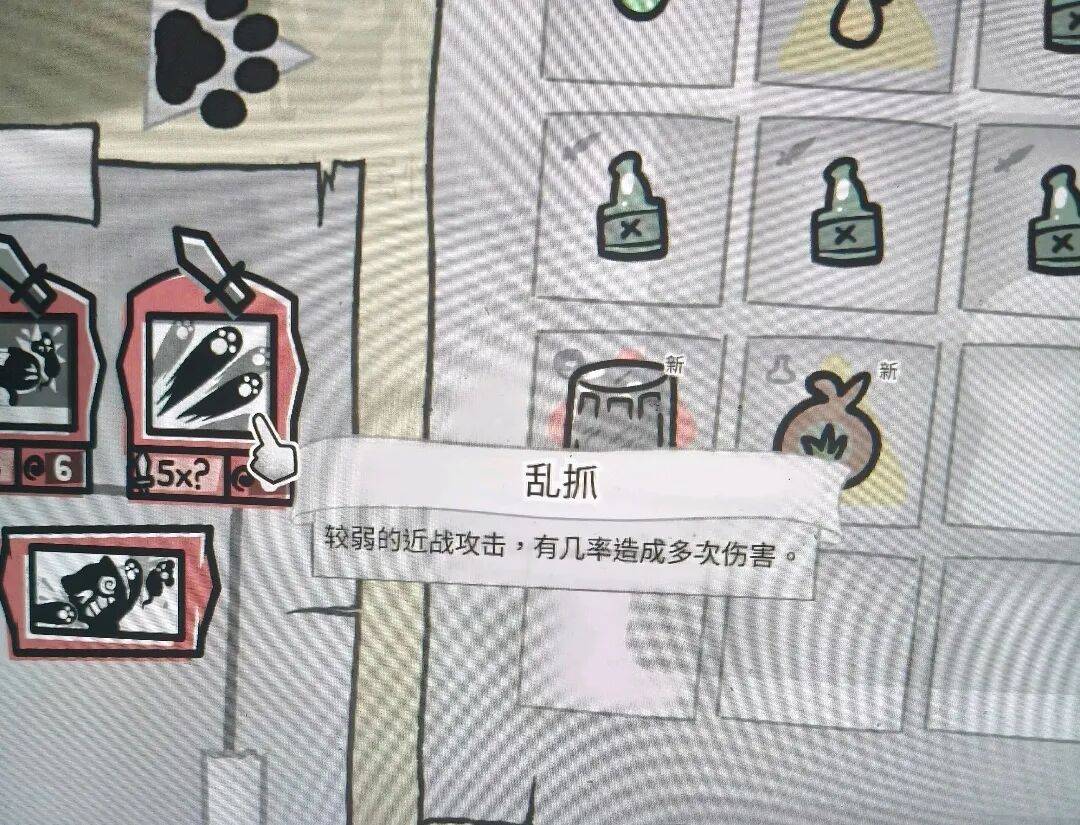 游戏中也会周期性地触发各种肉鸽事件,事件的结果往往取决于猫猫的体质判定。成功会带来各种奖励,比如新盟友的加入、特质的提升、获得高品质的变异能力,或者拿到稀有饰品。有些能力效果相当特别,比如"食粪癖"——猫咪通过食用粪便来恢复生命值。失败的决策则会带来严重的后果和各种诅咒。要是不小心得了个会传染的“禽流感”,那么几乎所有喵喵的战斗力都会少一大截,因为这个效果会把喵喵的普攻给替换掉。