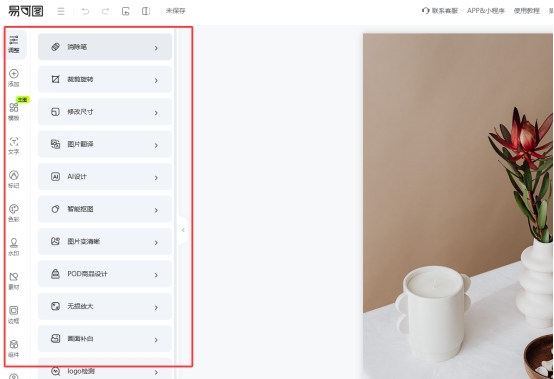 易可图是一个集图片生成和图像处理为一体的综合性AI工具,在实现图片抠图、消除笔、拼图等功能的同时也具有生成式的AI模块,可以利用文字的描述以及给定的参考图进行生成,能够帮助用户快速高效地完成电商主图的设计、产品的宣传展示图和社交媒体的广告海报的创作等工作。