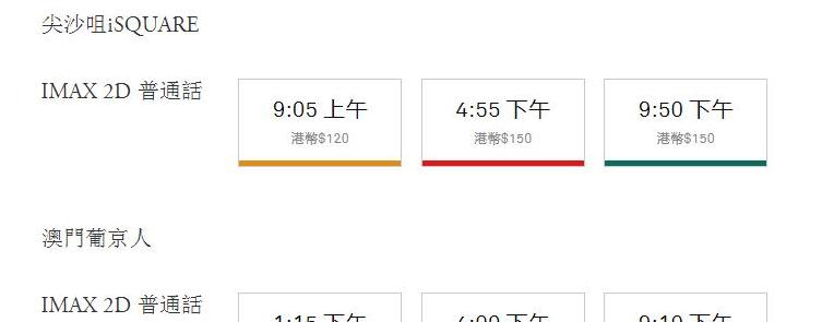 以IMAX版为例,尖沙咀的英皇影院,票价普通场次都要120元人民币,下午和晚上时间段则高达150元。