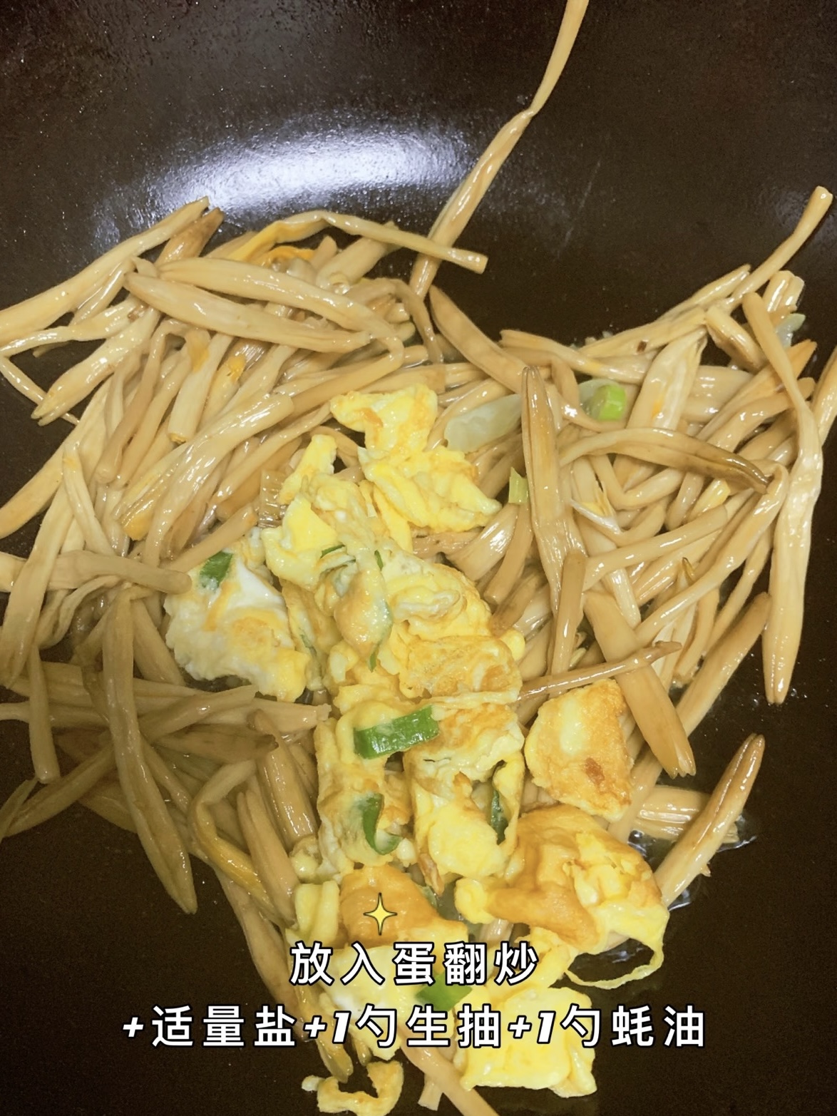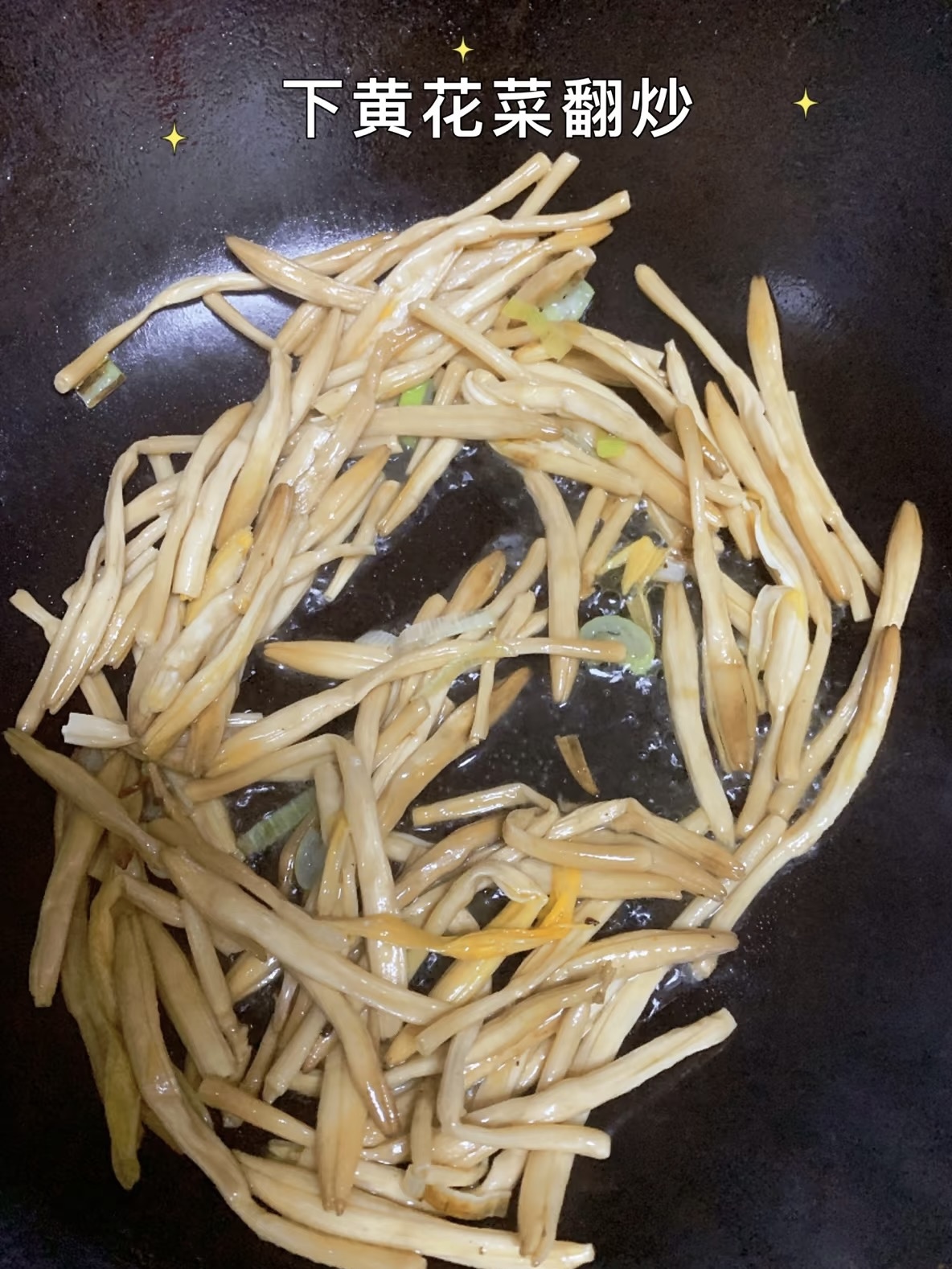 接着轮到黄花菜。把泡好的小金黄沥干水分,扔进锅里,大火快炒三十秒,它们会发出“嗦嗦”声,像在说“快点我”。沿锅边淋半勺料酒,酒气蒸腾带走土腥味,瞬间提升“鲜”格。调味只认三兄弟:盐、生抽、蚝油。盐一小撮,生抽提色,蚝油勾魂,比例记住“1:1:0.5”,咸鲜平衡,谁也别抢谁的风头。