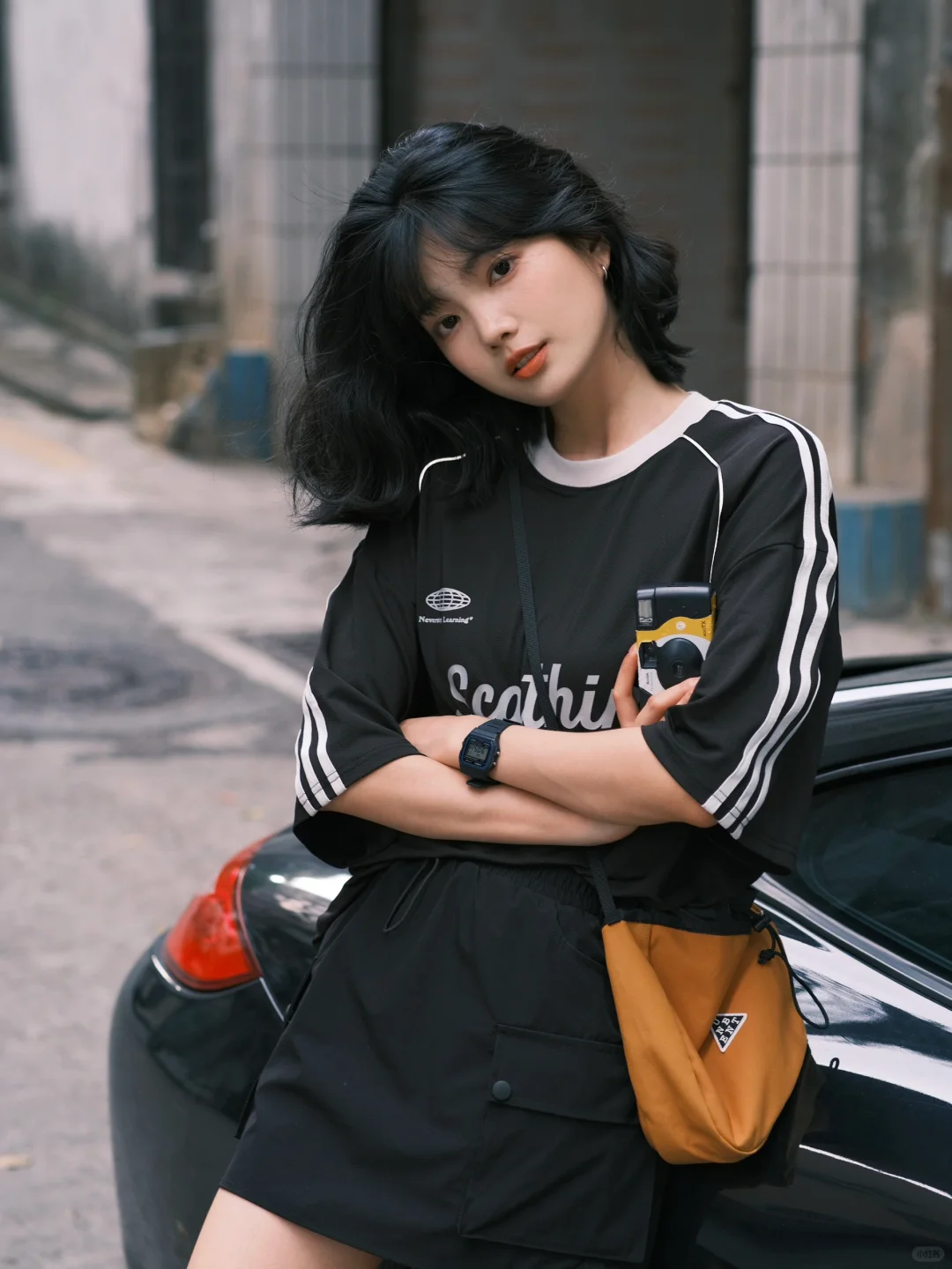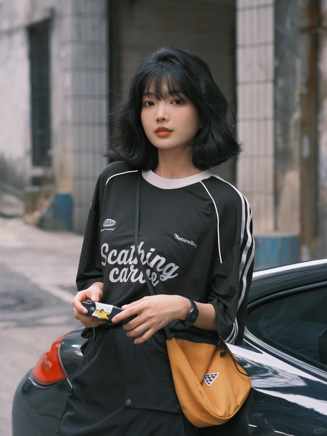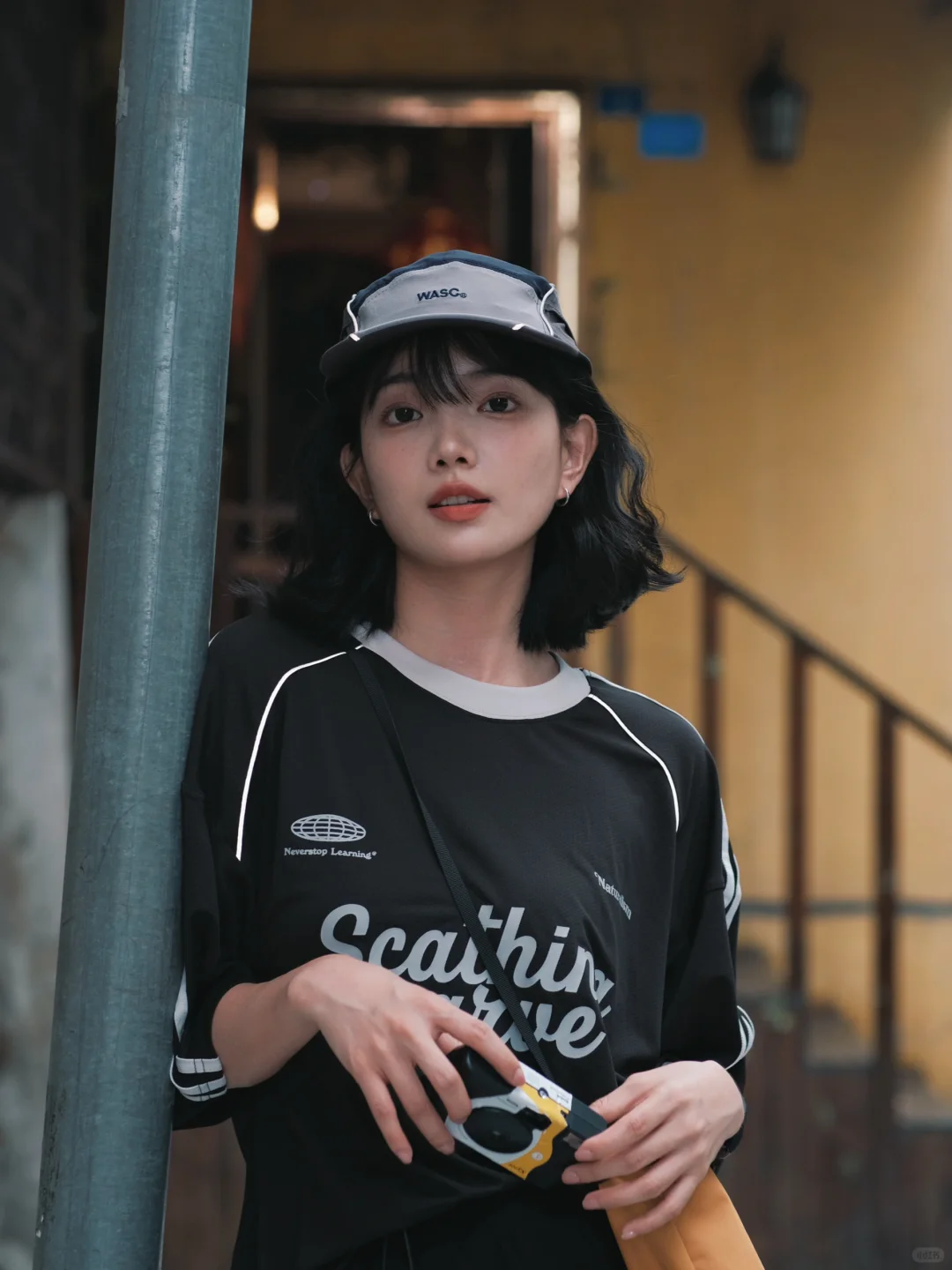 宽松球衣上身穿 All black是有点帅气呢🖤