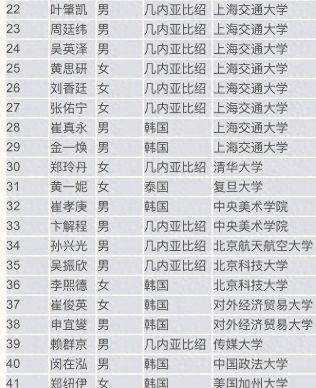 所谓国际部的毕业生,很奇怪的是,除了来自韩国的学生名字听起来确实有韩味儿外,其他像巴拿马、几内亚比绍等非洲国家的“毕业生”,名字怎么全都是妥妥的汉字,这看起来应该是本地学生呀,而且他们录取的大学也是一个比一个厉害,像上海交大、北京大学就招收了大量这类所谓“非洲户口”的学生。