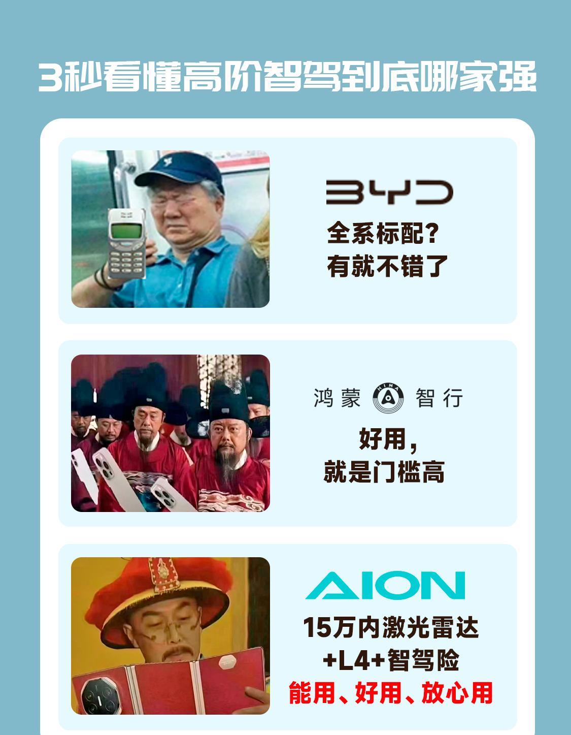 现在市面上智能驾驶的玩家不少,但是用户总觉得哪儿哪儿都不太对劲。比如说比亚迪,他们在便宜车上搞的智能驾驶只能在高速上用,功能太少了,勉强算是能用吧。华为的鸿蒙智行虽然挺不错的,但是价格太高了,一般人买不起。