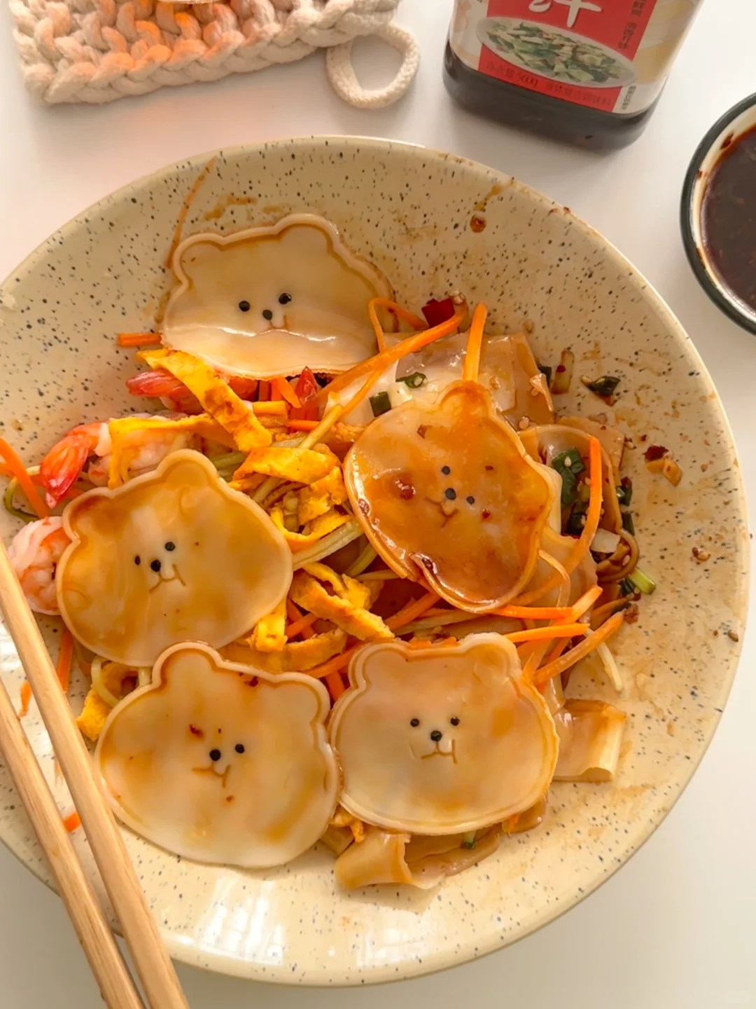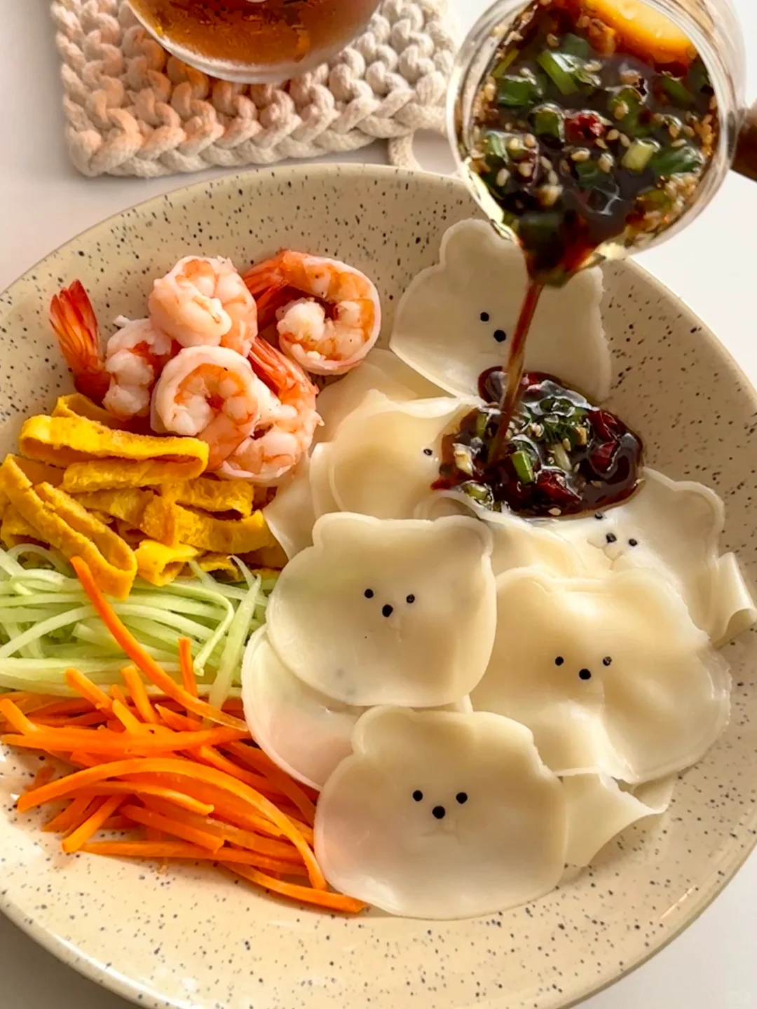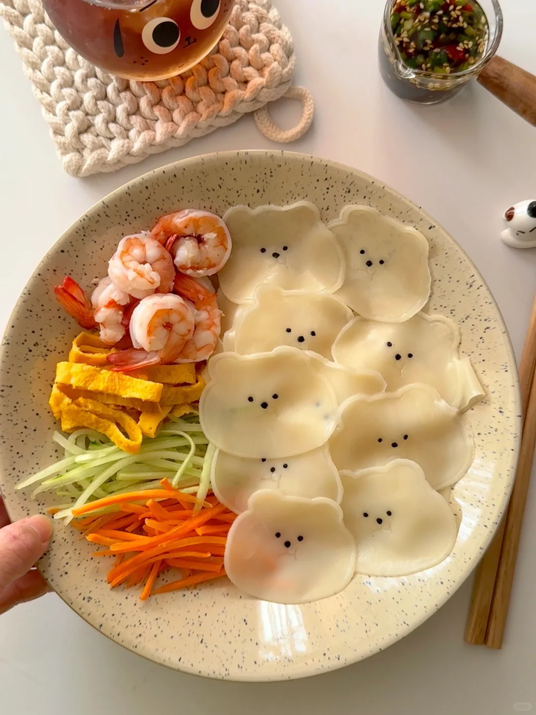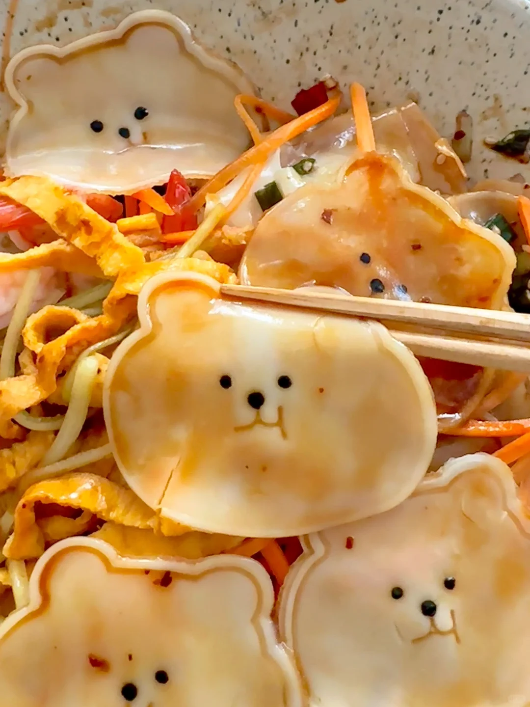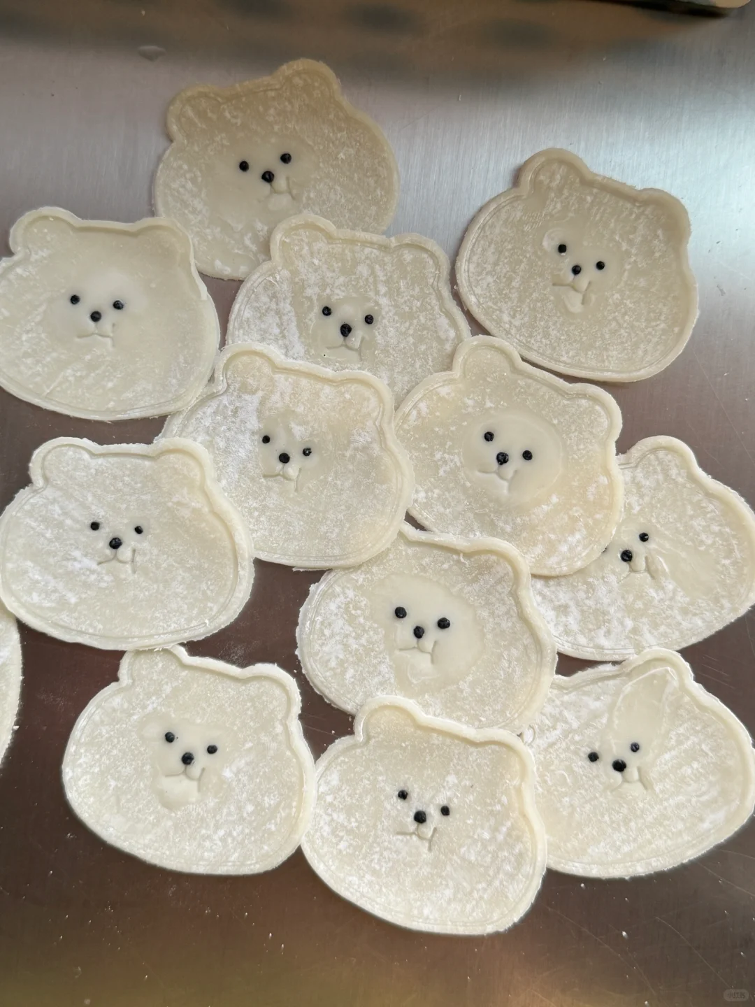 2️⃣饺子皮用模具印出小熊的样子,再给小熊加上表情