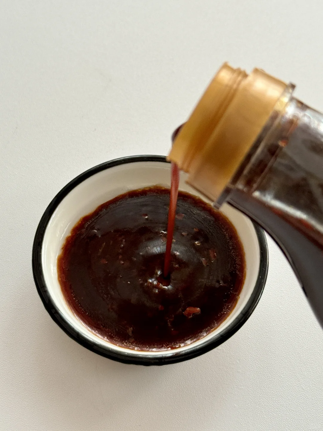 4️⃣灵魂酱汁:葱花蒜头小米辣白芝麻泼上热油,倒入海天酸辣凉拌汁搅拌均匀