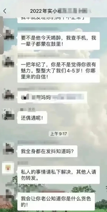 在这个本应充满中秋喜悦的时刻,莆田某小学三年级9班的家长群却意外掀起了轩然大波。一场关于“地下情”的曝光,让平静的校园生活泛起了层层涟漪。 故事的主角,是两位平时以文静、美丽著称的女家长。她们在众人眼中,不仅是孩子的骄傲,更是家庭的支柱。然而,一段段高清视频和聊天记录的曝光,彻底颠覆了她们的形象。原来,这两位看似毫无交集的家长,竟在私下里与另一位男家长有着不为人知的秘密。 中秋前夕,一位女家长在愤怒中,将这一切公之于众。她在家长群里连续发布视频,直指另一位女家长与她老公的不正当关系,言辞之激烈,情感之复杂,让人唏嘘不已。这一幕,不仅让群内其他家长震惊,也让整个网络为之哗然。 随着事件的发酵,人们开始质疑:为何如此文静的家长,会做出如此出格之事?是情感的失控,还是道德的沦丧?而更令人深思的是,这一事件对孩子们的影响将如何深远。他们的世界本应是纯真无邪的,如今却要面对家庭破裂、父母丑闻的残酷现实。 值得注意的是,这两位女家长中,有一位还是家委会的成员。这不禁让人猜想,是不是频繁的接触和交流,让她们之间产生了超越友谊的情感?但无论如何,这都不是她们可以背叛家庭、伤害他人的理由。 如今,班级群已解散,学校和教育局也对此事给予了高度关注。然而,对于涉事的孩子来说,这场风波所带来的阴影和伤害,却可能伴随他们一生。在这个本该团圆和乐的中秋佳节,他们或许只能默默承受,等待时间的疗愈。 这场风波,再次提醒我们:在生活的舞台上,每个人都有可能扮演不同的角色。但无论何种角色,我们都应坚守道德底线,尊重他人,珍惜家庭。因为,一旦越过那条红线,等待我们的,将是无法挽回的遗憾和痛苦。
