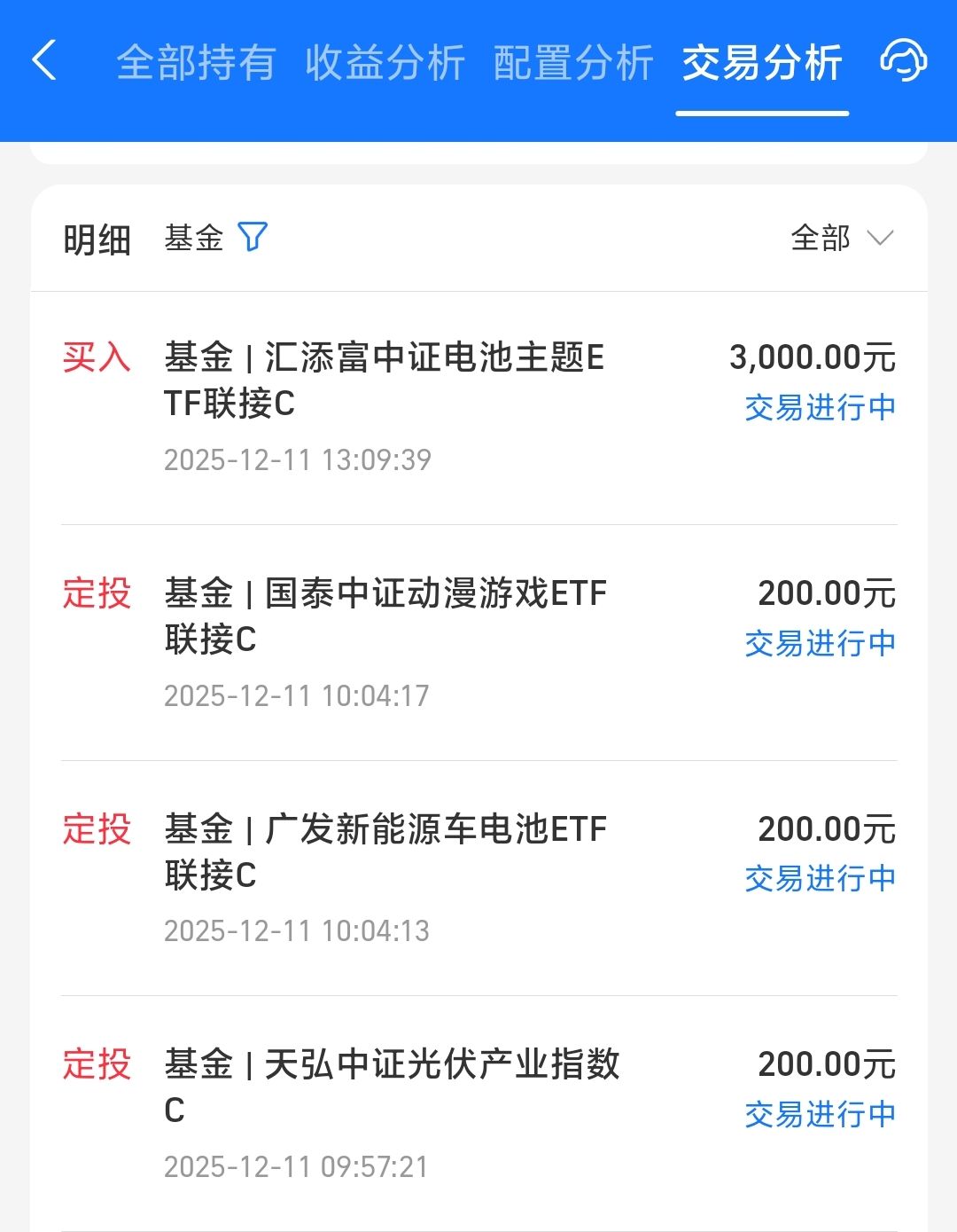 1.买入3000元$汇添富中证电池主题ETF联接C$