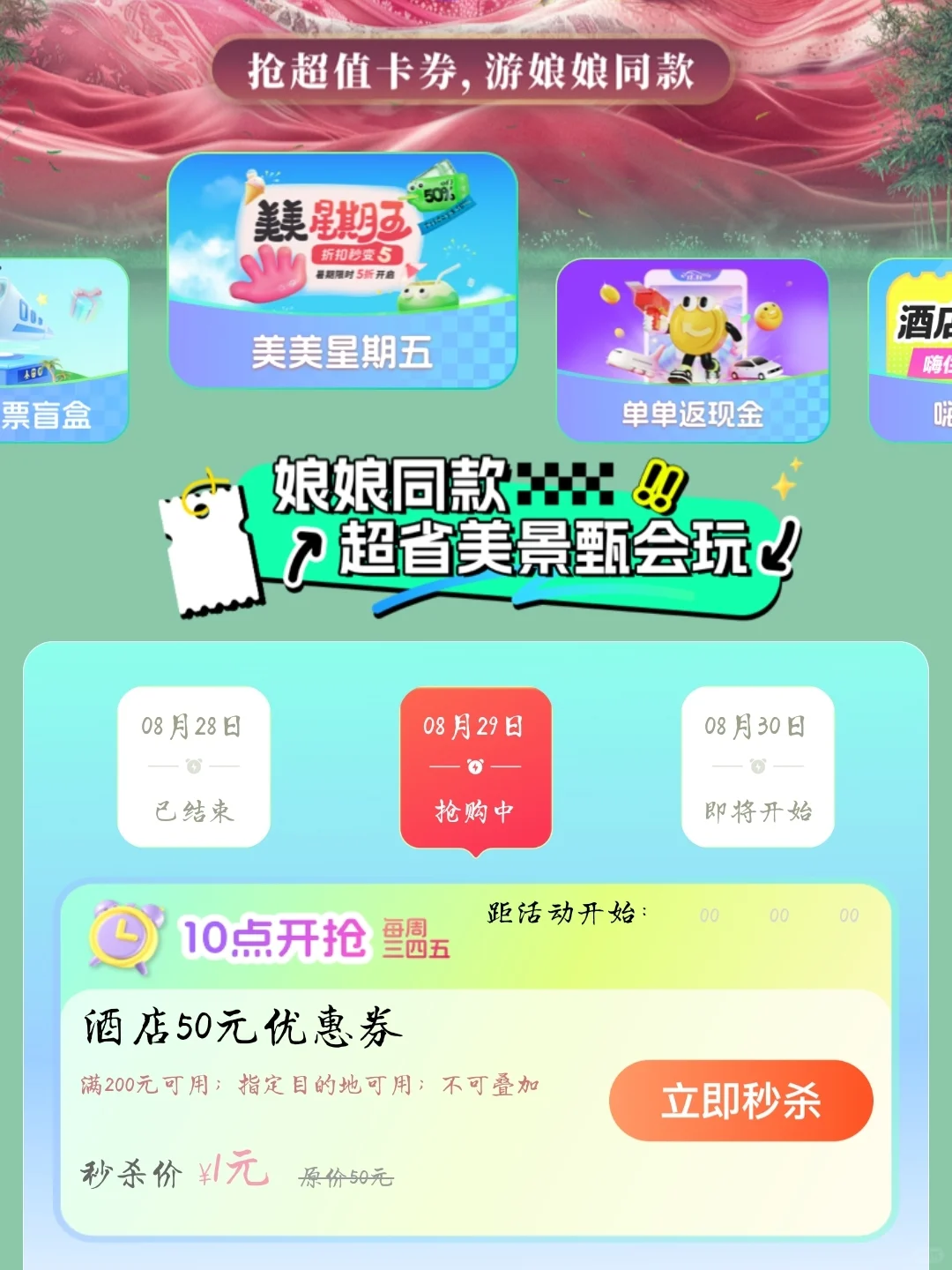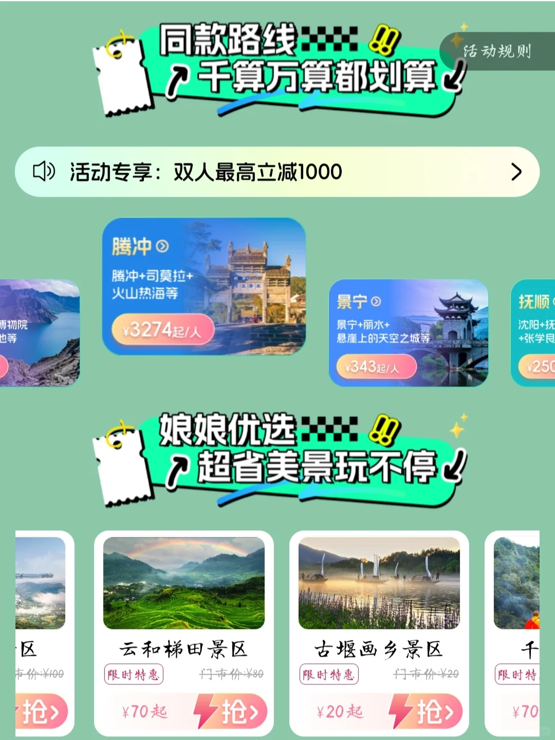 ✨这次跟着《焕新环游传》打卡宁夏之旅中被种草了同程旅行,亲测真的超级省!上同程旅行搜索【超级省】,可以领210元国内酒店红包,每周三四五还可以秒超值卡券,即刻畅游娘娘同款。还有双人立减1000的活动以及姐姐同款旅游攻略,从机酒到住宿直接被安排的明明白白!