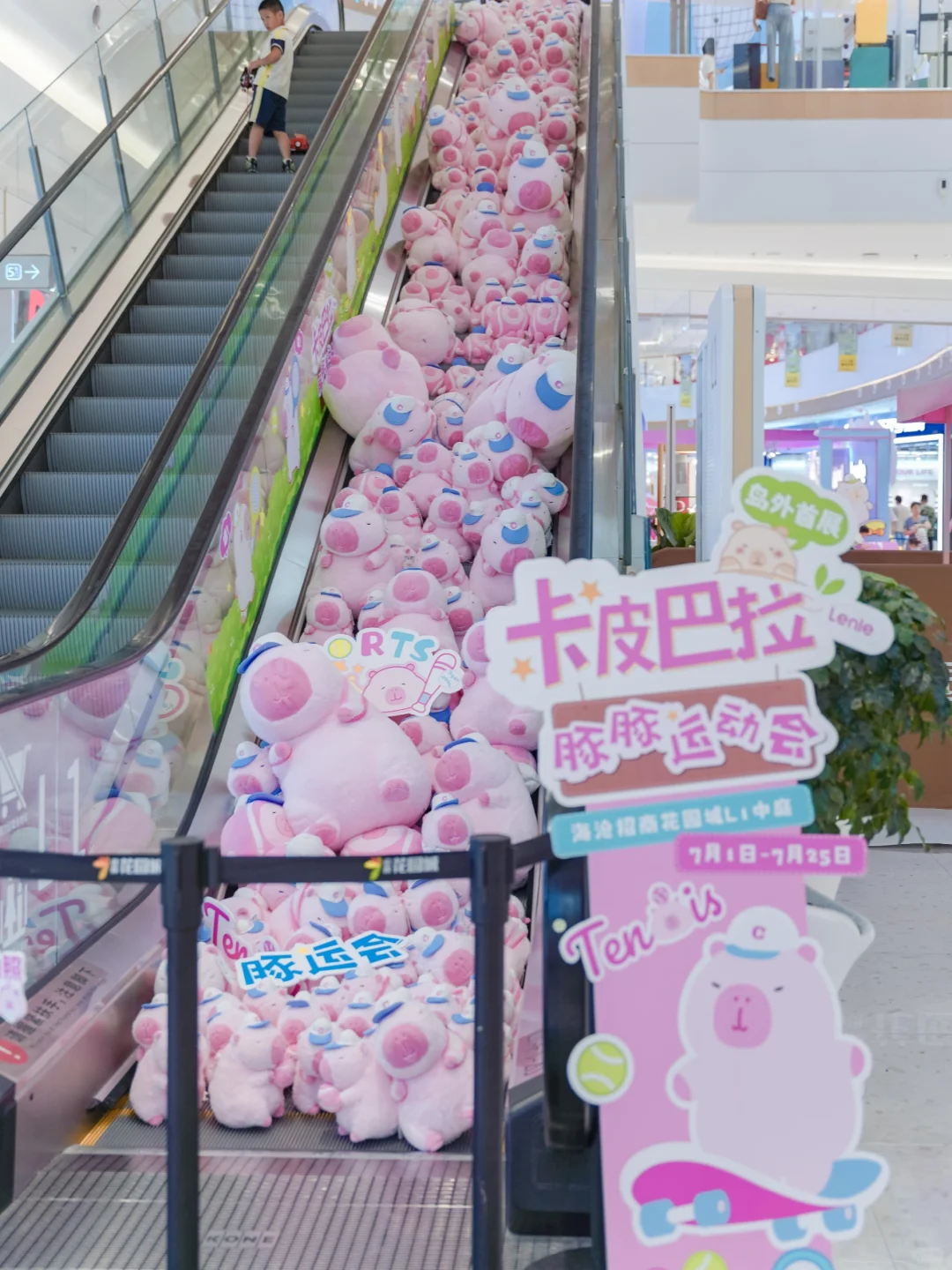 这个暑假就带孩子来这里玩耍吧。这里正在举办“豚豚运动会”,到处充满了粉嫩的卡皮巴拉元素 · 1️⃣1号门口的巨型「卡皮巴拉」在招呼着你进来 2️⃣一楼中庭「豚豚运动会」快闪店:满满的卡皮巴拉周边(从玩偶到文具),还有粉色滑梯和各种有趣的互动游戏,让孩子沉浸在这个粉嫩的世界 3️⃣一楼手扶梯粉嫩的卡皮巴拉玩偶铺满了整个电梯 4️⃣在空中跳跃的巨型卡皮巴拉 快来带上孩子来这里避暑玩耍享受悠闲的假期时光吧! ⏱时间:7月1日至7月25日 📍 地点:厦门海沧招商花园城L1中庭 ·