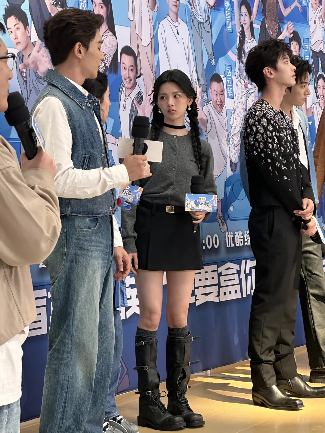 今天《盲盒旅行团》来阿里大文娱扫楼,来了12个人,阶梯花园都挤不下了哈哈哈哈! 为了看杨超越挤了半天,看到妹妹第一眼就喊出来了,好美! 她个子好高啊,完全的高妹,腿超级美,脸状态好好,又白又嫩,死亡打光也盖不住美貌,完全的真人芭比! 而且超级可爱,小表情超级灵动!怪不得超越妹妹死忠粉多,看了真人真的很容易爱上。