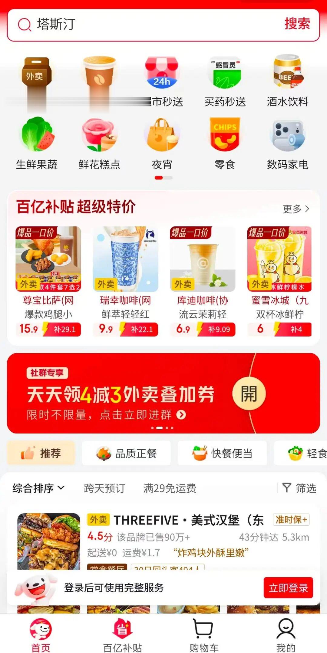 此次上线的京东外卖小程序覆盖品类较为丰富,不仅包含美食外卖、咖啡奶茶、生鲜果蔬等经典外卖品类,还拓展了超市秒送、买药秒送、酒水饮料、鲜花糕点、数码家电、夜宵零食等多元品类。