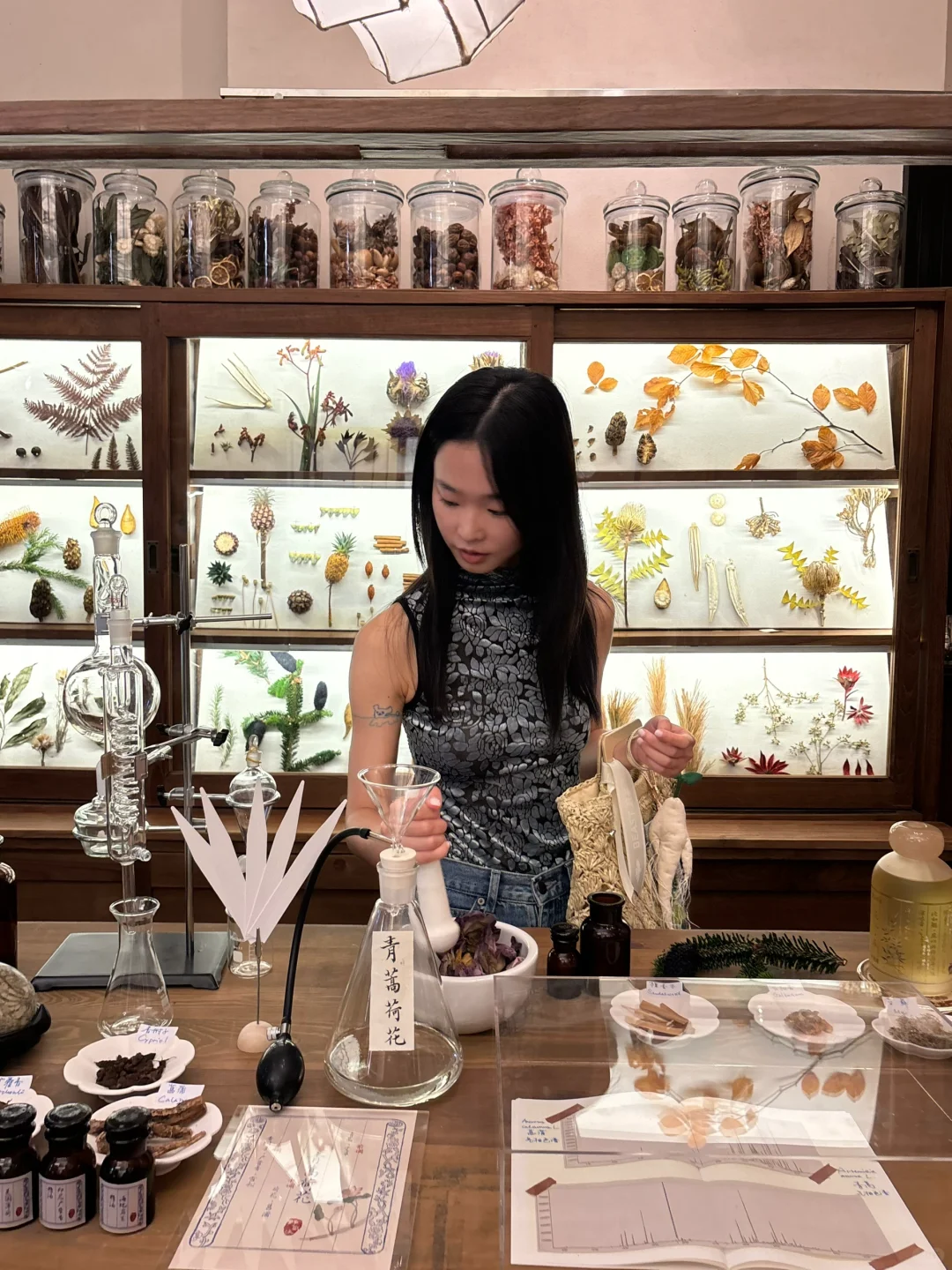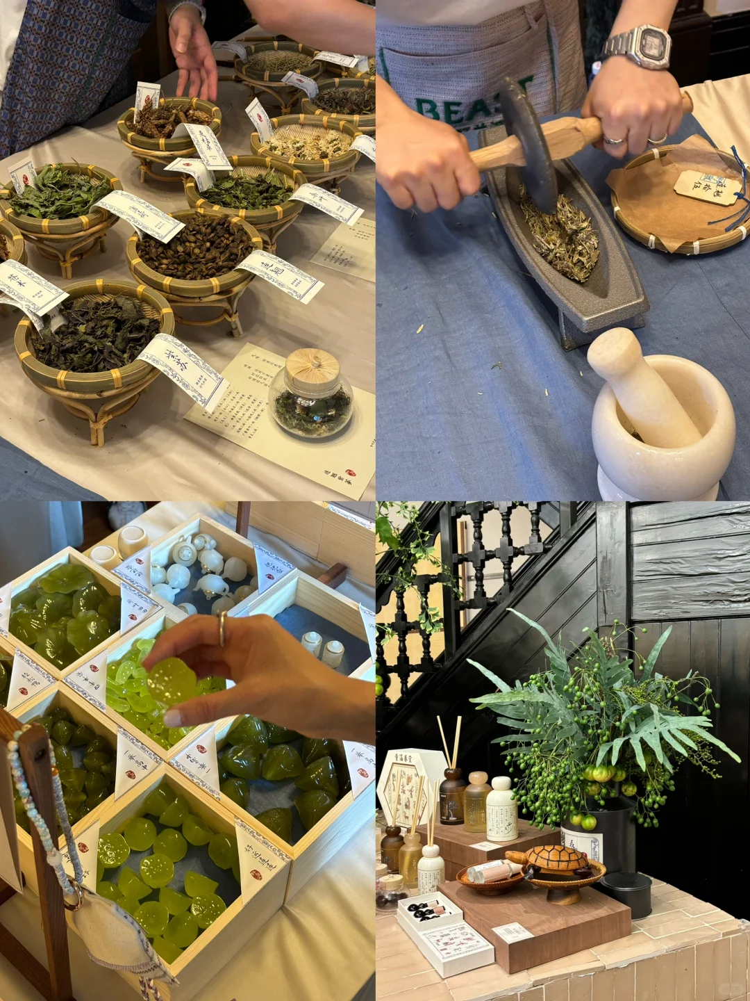 来夏安香铺消暑啦~像抓中药一样做香挂可太有意思了,小时候还梦想过在中药铺子工作呢!这次从抓药-碾药-选布-选配件,带走了属于自己的夏日香气,每个细节都好有趣,喜欢🥳 还喝了消暑凉茶,太适合上海的三伏天了,在古香古色的宅院里,也算是优雅了一把吧~