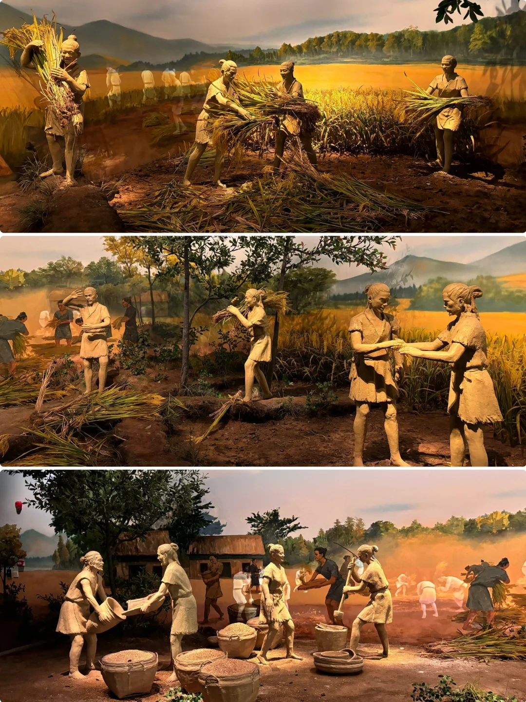 稻田活动后,我们开车🚗来到了屈家岭遗址博物馆,无需买🎫,博物馆主要展现史前文化,体验农耕文化,现场还体验了陶土上彩绘,参加了他们现场准备的小活动,猜不同,投壶,非遗漆扇….