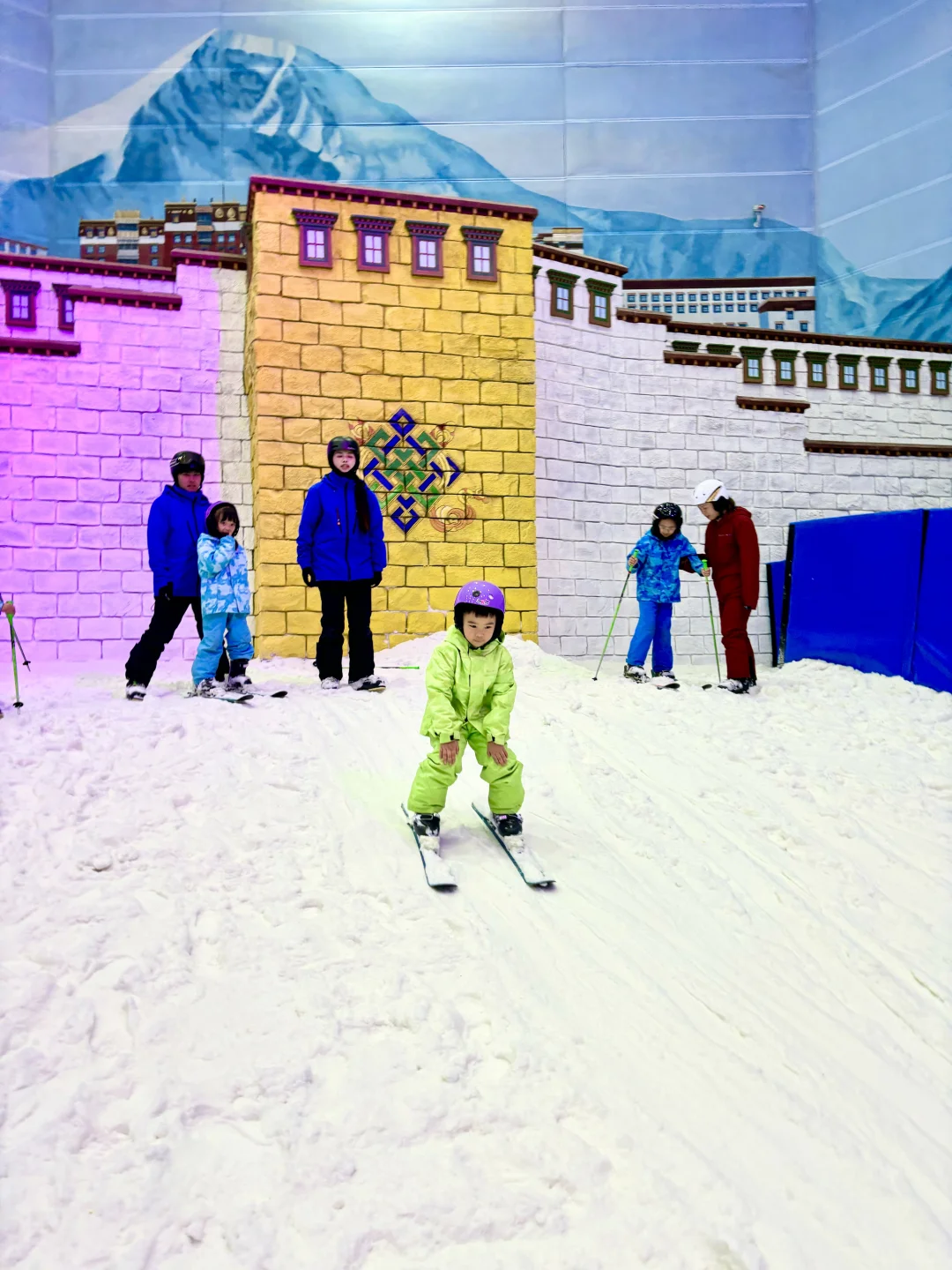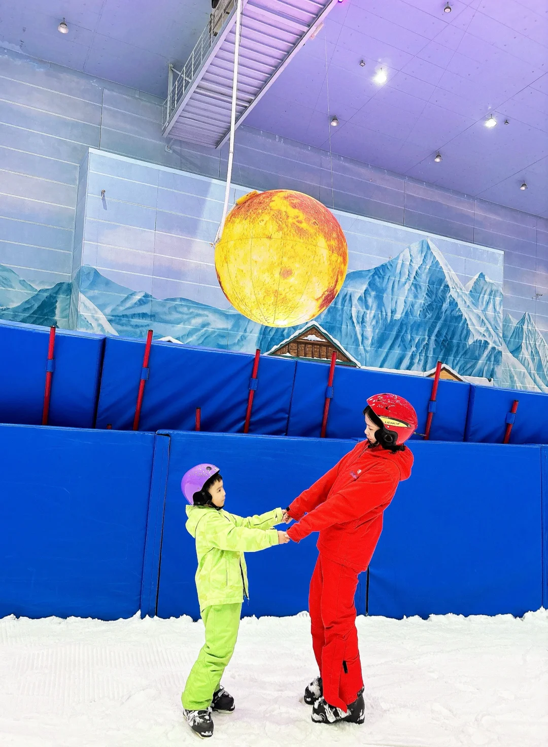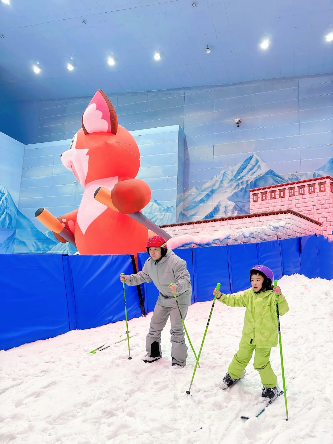 5️⃣假期然然一直想去玩滑雪,果断给然然试了一下教学课,一整节课下来,真的要实名表扬老师们耐心的讲解滑雪的技巧,滑板的认识,滑板的穿脱,滑雪的注意事项⚠️,滑雪要往前倾,不要往后仰,想减速就要内八字,我觉得基本摔几次就学会了,哈哈哈哈哈哈哈哈,暑期尊的要学起来~