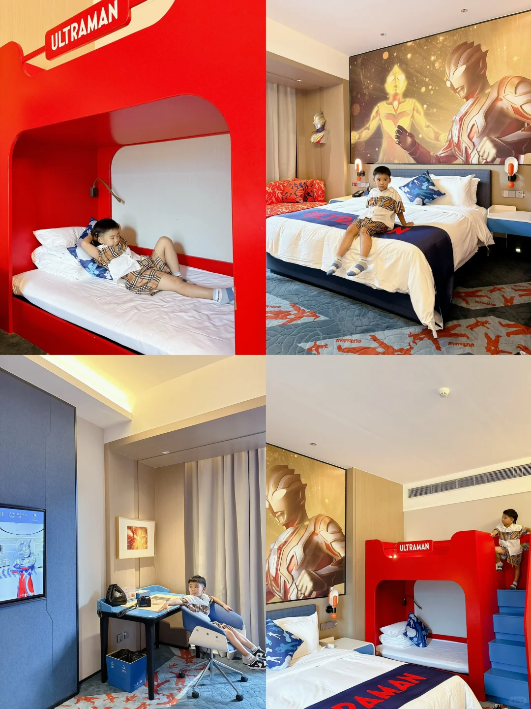 6️⃣我们打算玩两天,我们预定的是奥特曼主题的房间,他们都是一栋栋的房间,妥妥的奥特曼小镇,房间有一张大床和一张高低床,房间带有小阳台,推开门我们就看到的奥特曼~