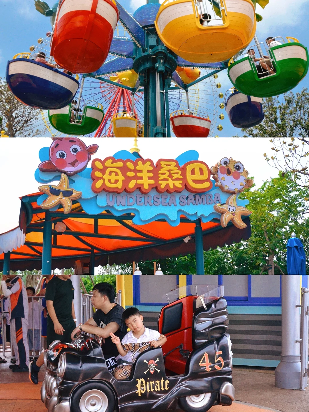 4️⃣ 海星岛的游乐设施对小朋友友好的有海洋桑巴,飞翔艾洛特,旋转水战…..我和爸爸挑战了海盗船,大摆锤好玩👍玩累一家三口排队坐坐20min的摩天轮🎡