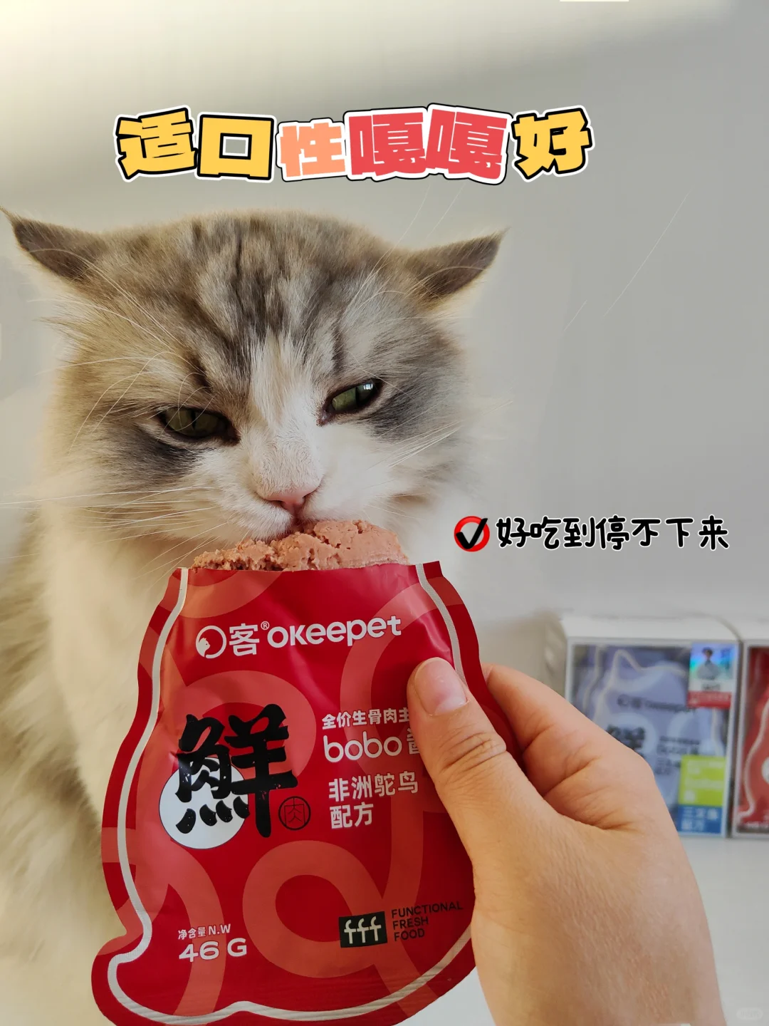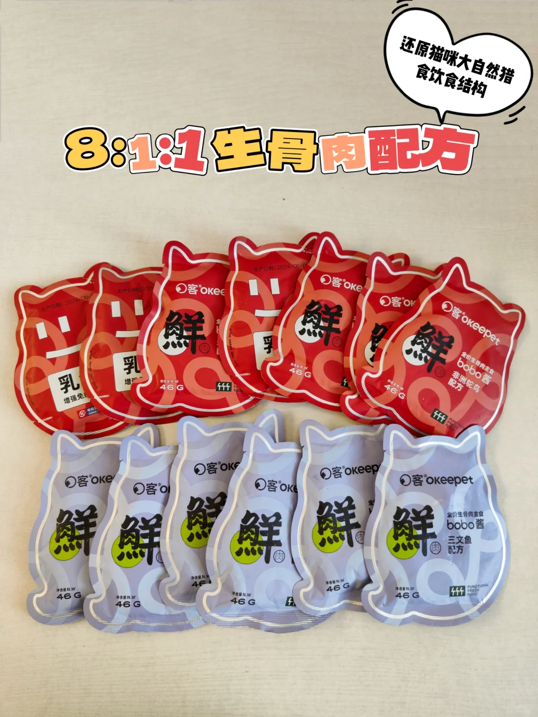 O客他们家的这款主食餐包是真好吃啊! 小馋猫一口接一口的狂炫~ 46g/包,一餐一包刚刚好🥰 配料干净[零R]添➕,还是中科院生物博士团队研发的,小猫吃着嘎嘎放心👍🏻!!!