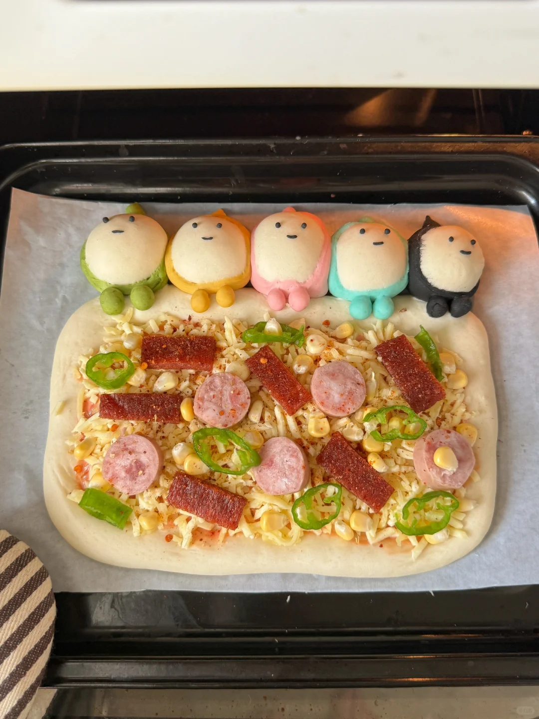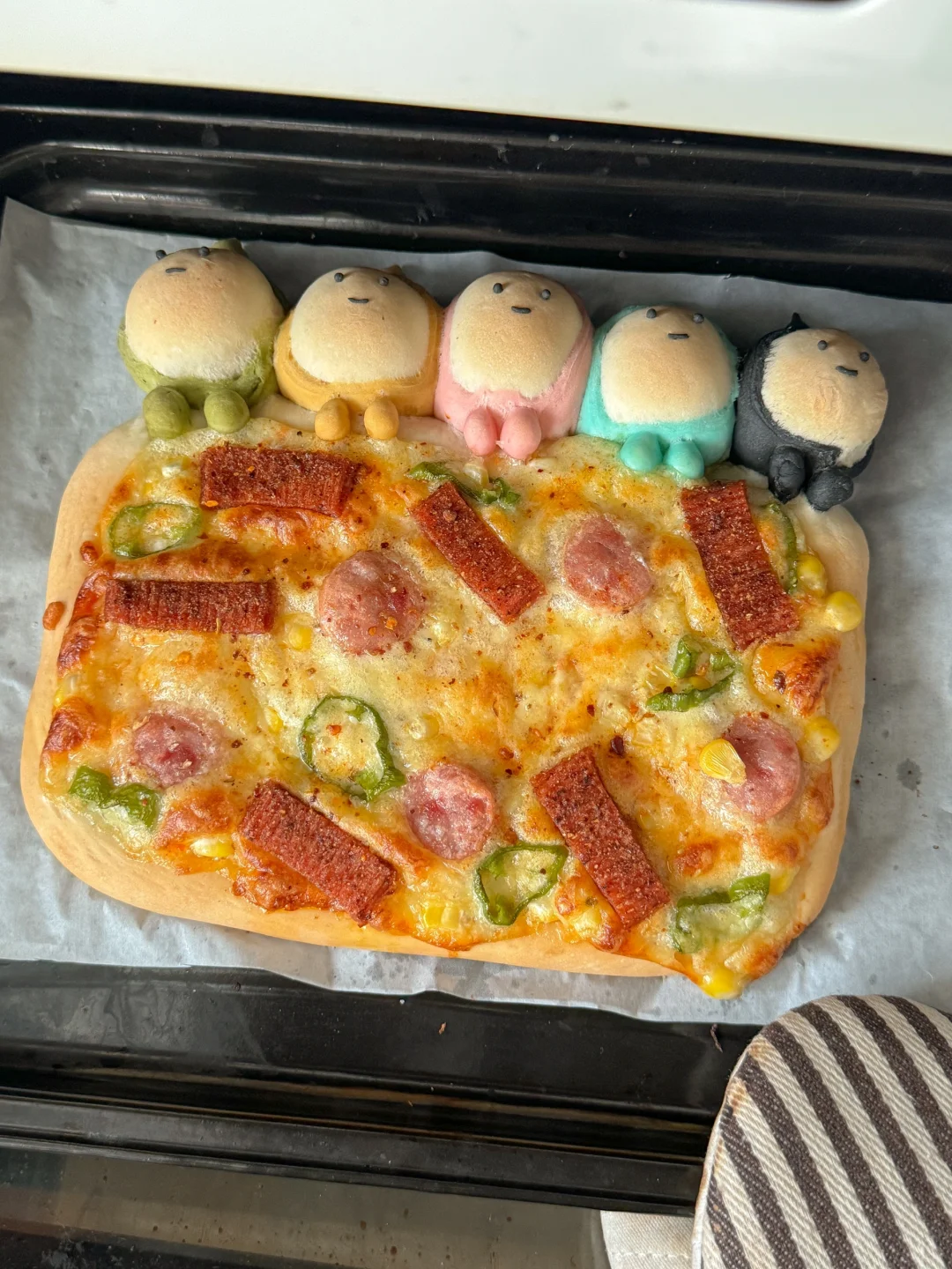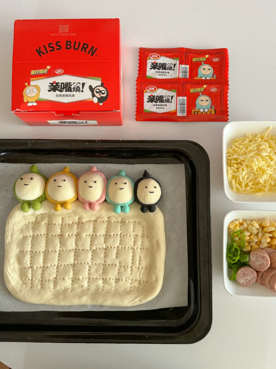 今天分享的是亲嘴烧风味的披萨,上面还有可爱的蛋仔