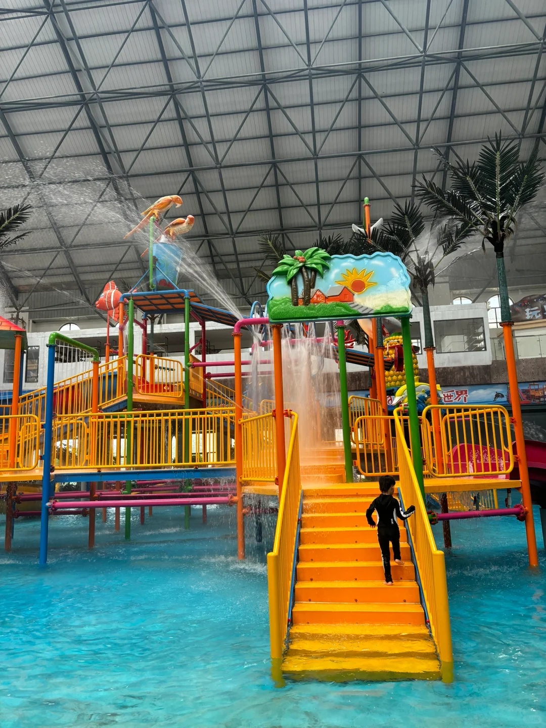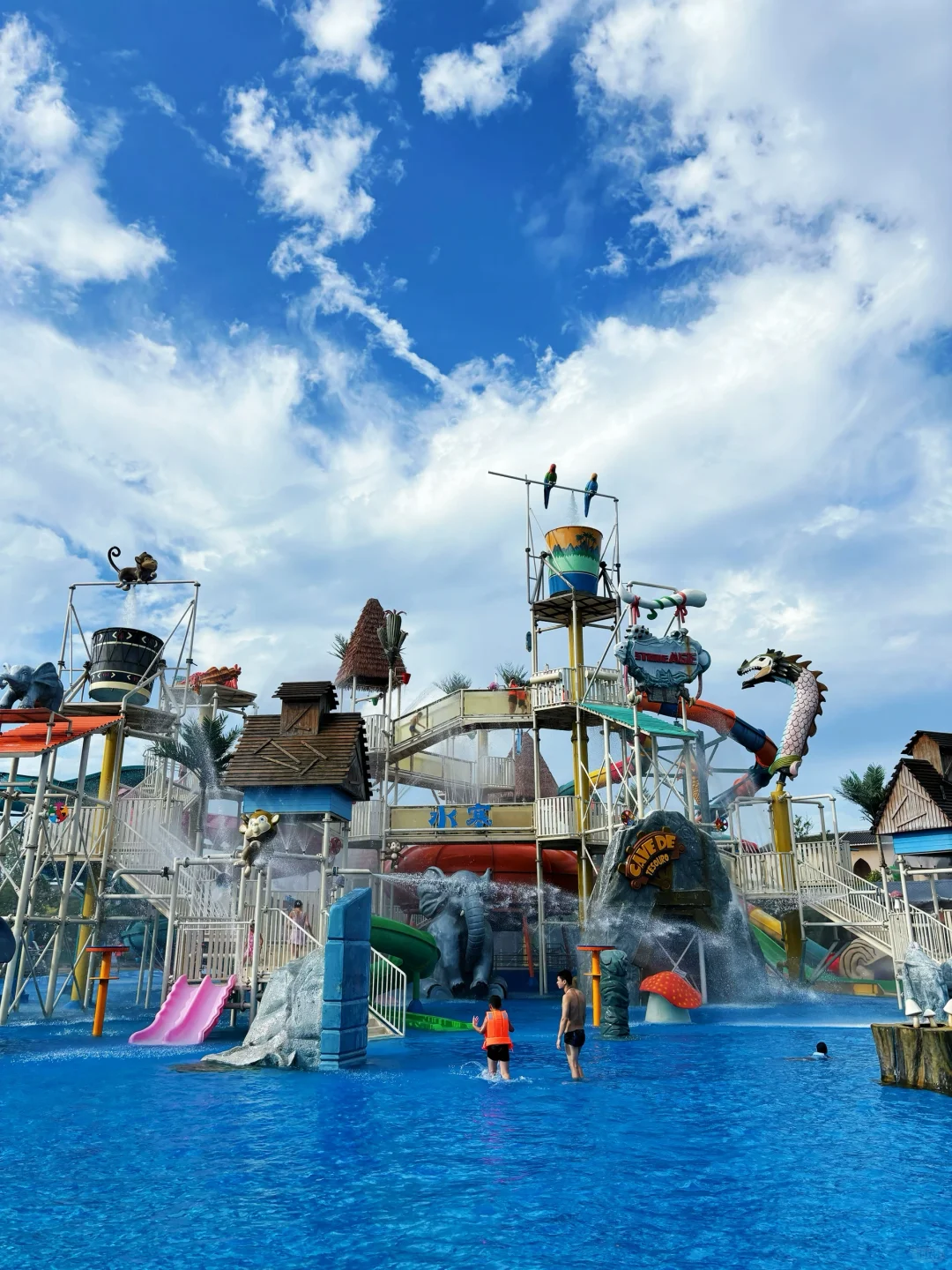 ✔️室内游玩区域:海啸池,回旋滑道,儿童水寨,美人鱼泡泡及表演池,完全不用担心🌞