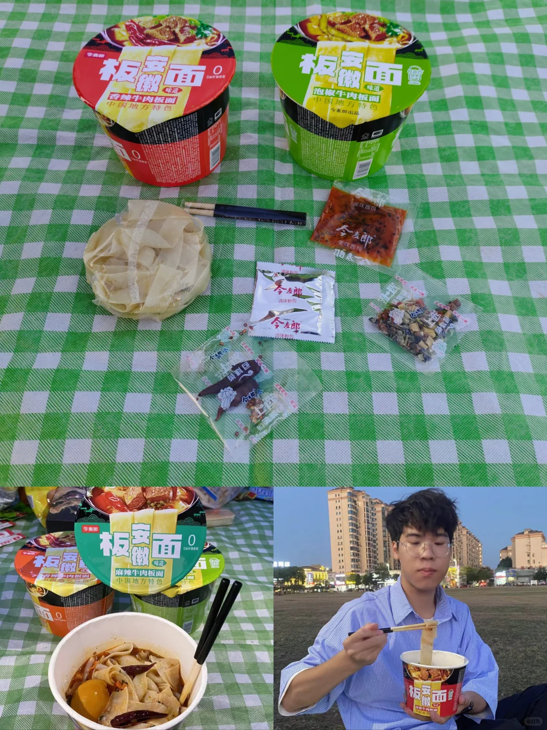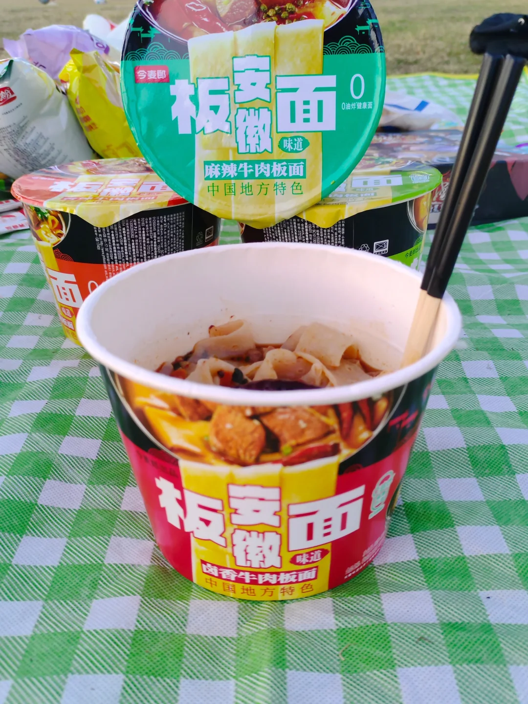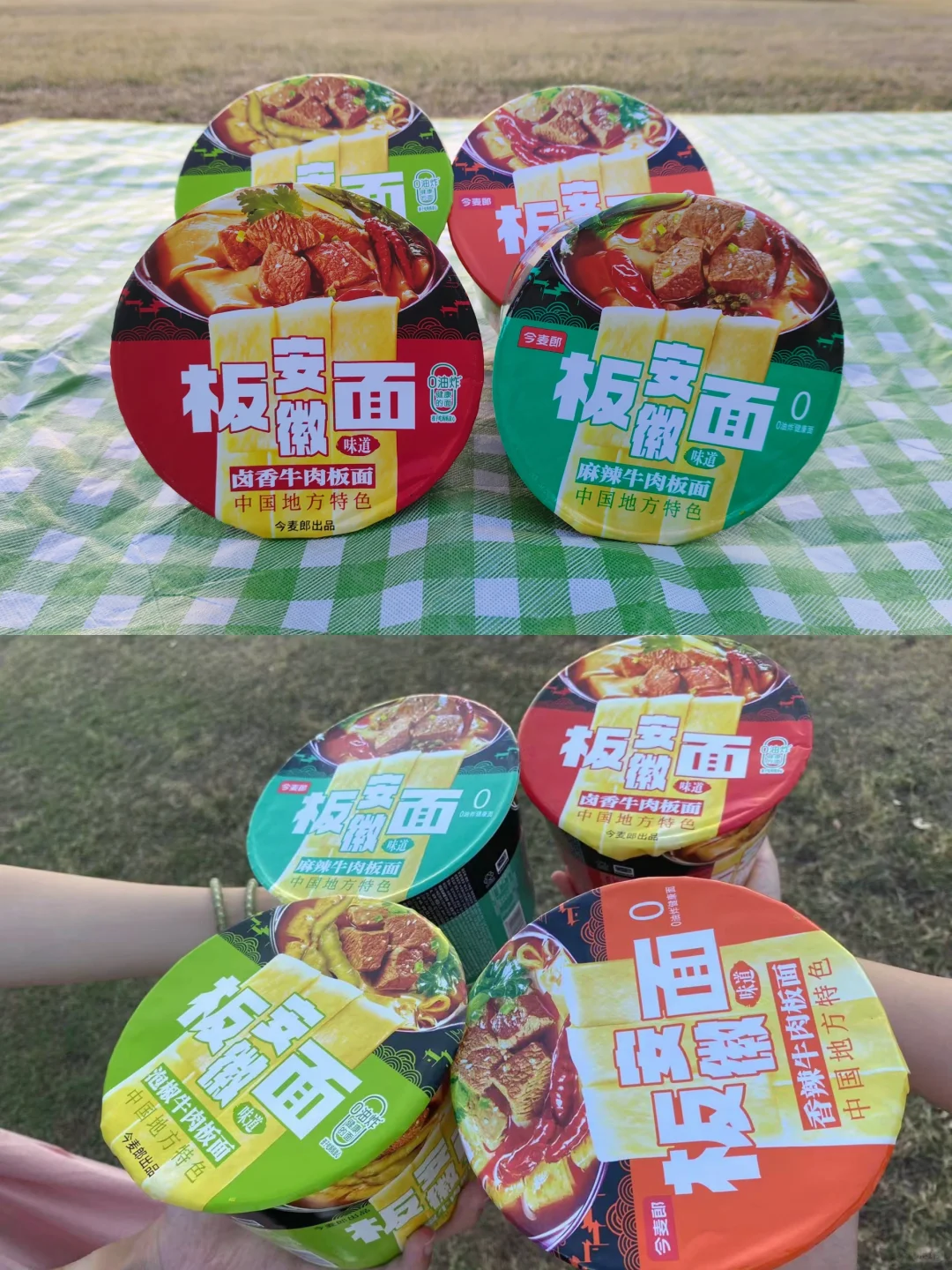 🔸这次秋游我和好朋友们带上了今麦郎安徽板面,玩累了就坐在野餐垫上面休息,拿出书包里的零食水果和今麦郎安徽板面补充体力。