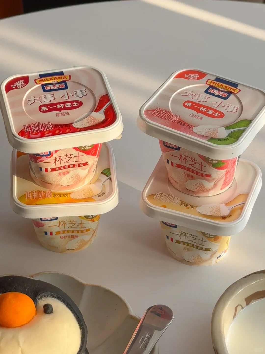 还有多种口味可以选择,原味🧀吃起来也不会腻,草莓味🍓白桃味和杨枝甘露味的果香和芝士的奶香越吃越上头,配料也很干净,吃起来放心,朋友们直接冲吧!