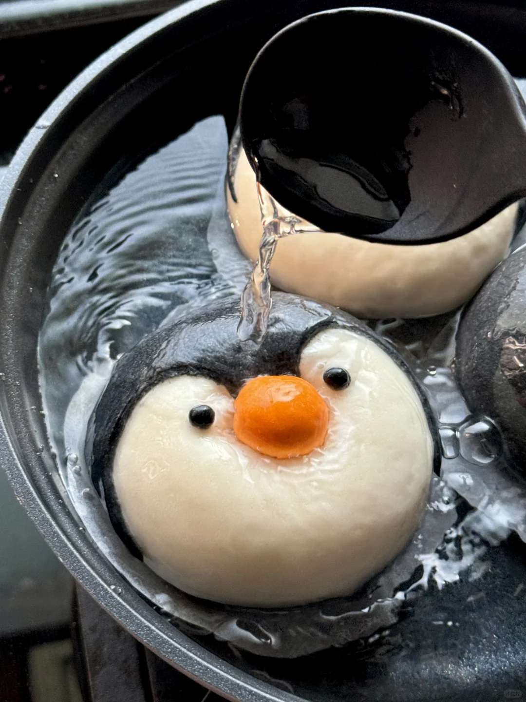 5️⃣1000ml清水+40g白糖,贝果放入微微煮沸的小锅里煮25秒