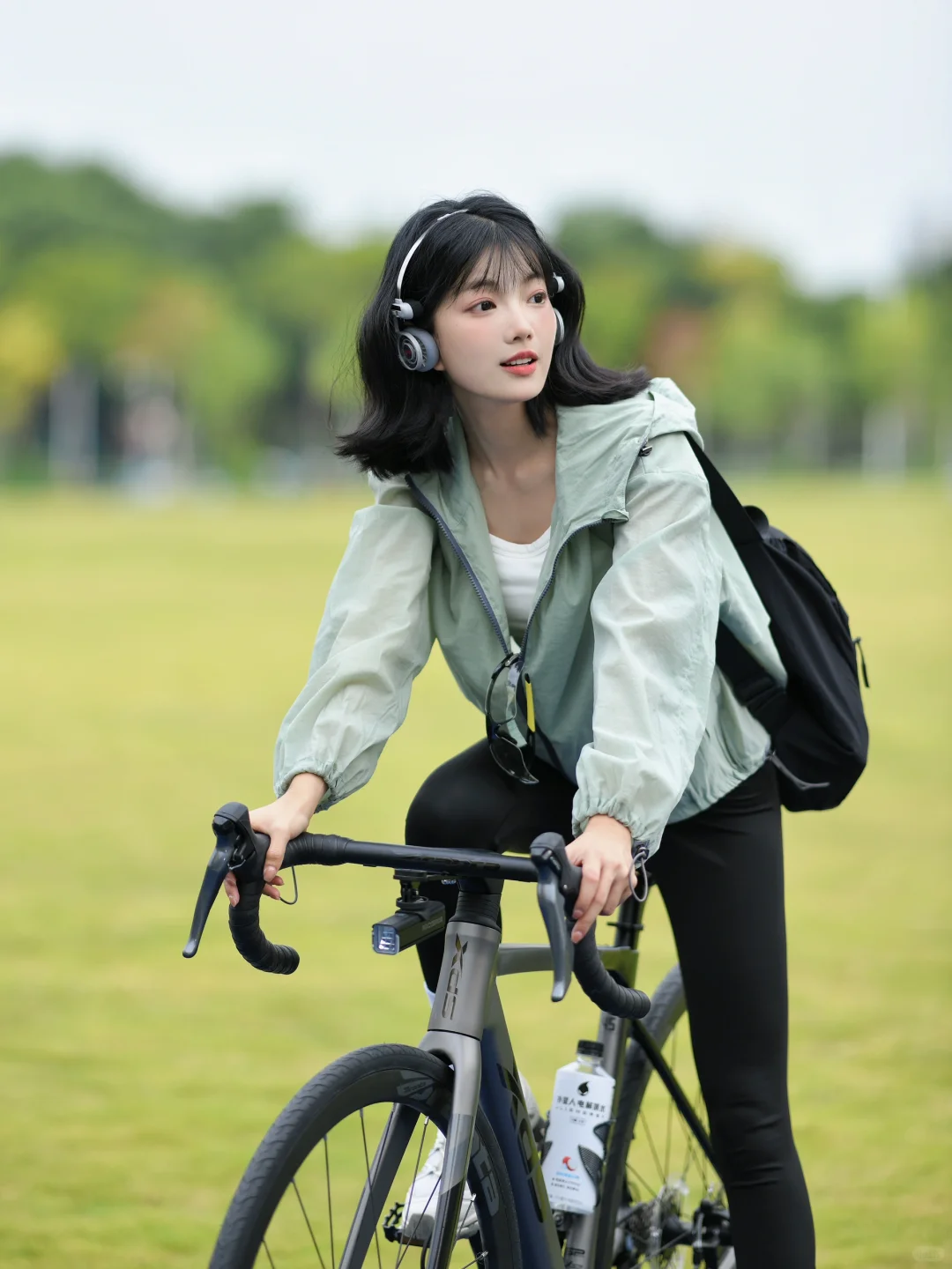 在公园骑行 耳机里的音乐混合着呼呼风声