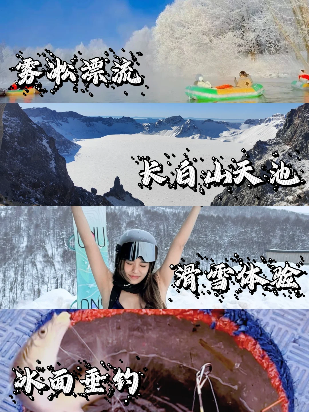 长白山冬天不止有天池🗻滑雪、雾凇漂流、雪岭麋鹿、泡露天温泉、雪地穿越、冰面垂钓、吃东北铁锅炖,想去的姐妹赶紧保存一下🚨。