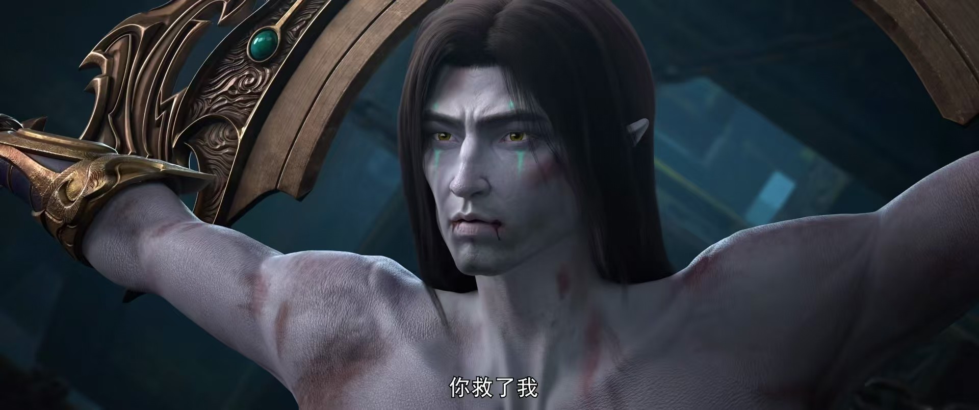 萧炎和彩鳞一行人抵达九幽黄泉寻找黄泉血晶,萧炎在泉水底部发现了一个被铁链捆缚的男子,此人自称九冥地蟒族前族长,名叫妖暝。
