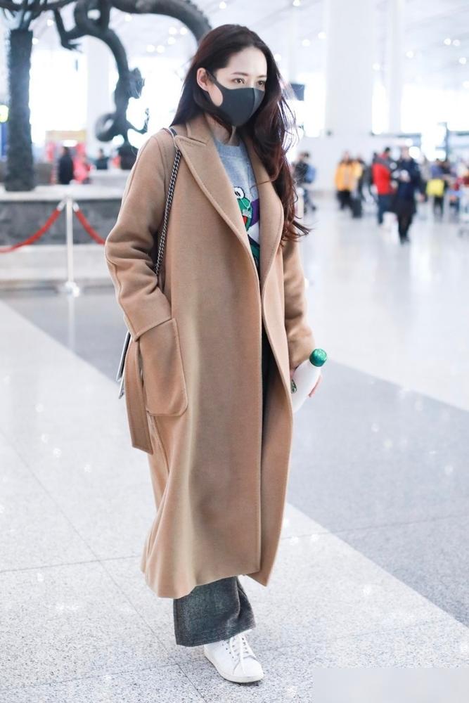 郭碧婷这身机场穿搭确实挺舒服的。驼色大衣配阔腿裤,再加双小白鞋,看着就很自在。没有那种硬要打扮的感觉,头发被风吹乱了也不在意。