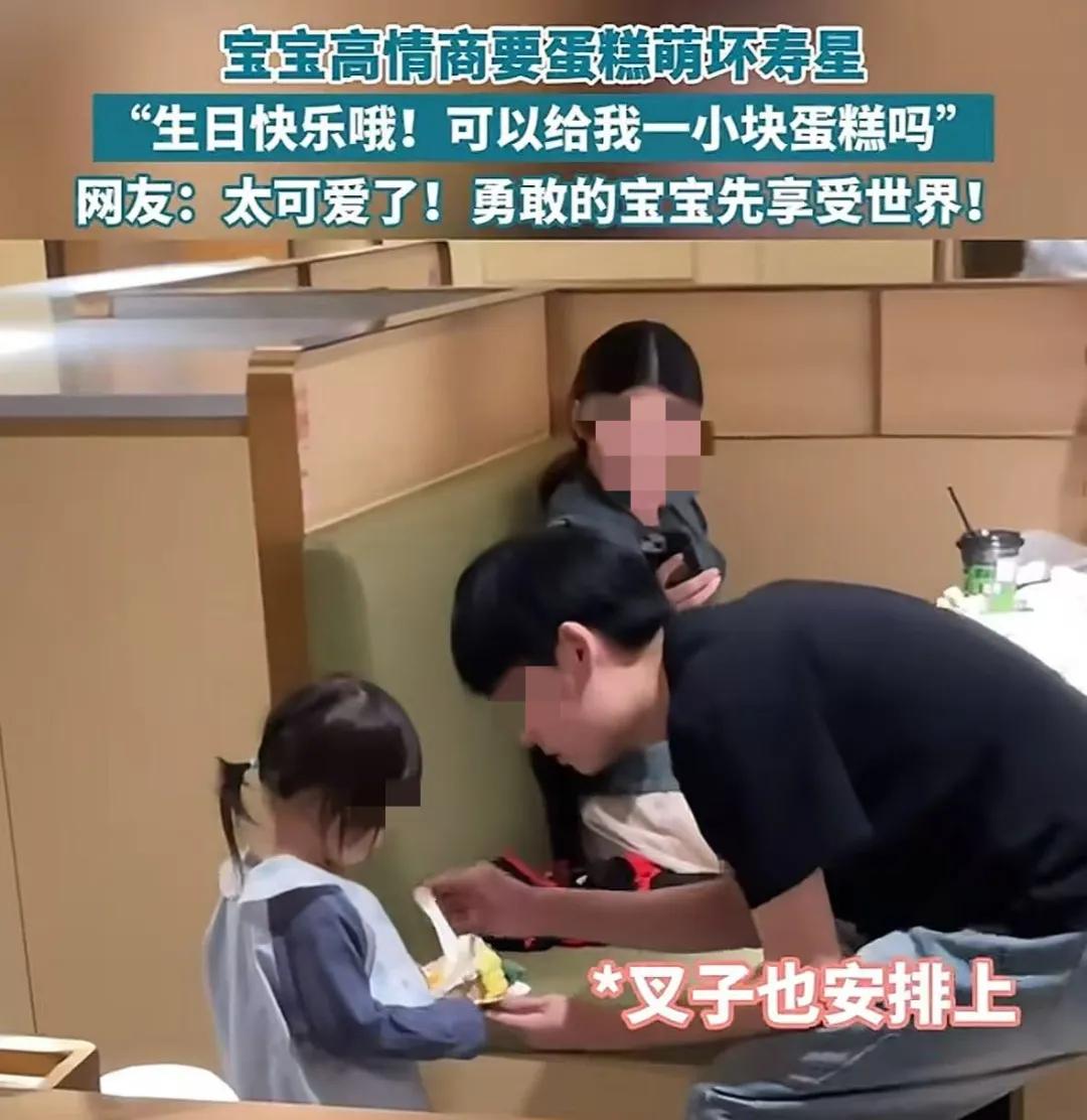 都是父母带着孩子,去找过生日的陌生人讨要蛋糕,还都举着个手机全程拍摄。