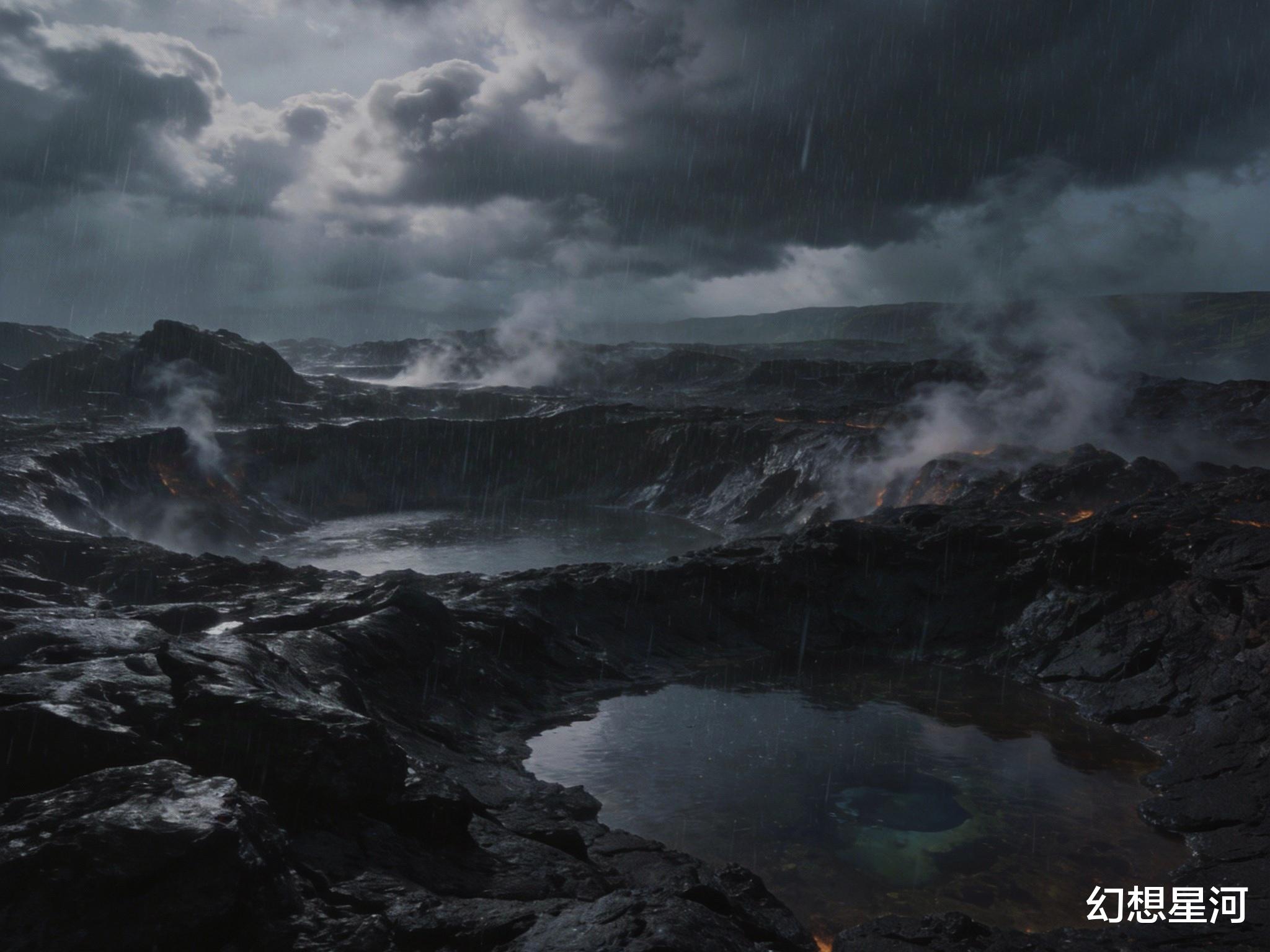 温度一点点下降,地球内部的岩浆活动慢慢平缓,火山喷发却愈发频繁。这些喷发时既释放大量水蒸气和气体,也喷出岩浆。水蒸气升到高空遇冷凝结成水滴,一场持续数百万年的大雨就此形成。地壳的低洼处,被越下越多的雨水顺着汇聚,最初的海洋慢慢成型,地球引力牵引着那些喷发出来的气体,让它们慢慢包围地球,最原始的大气层就此形成。