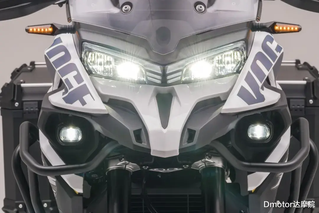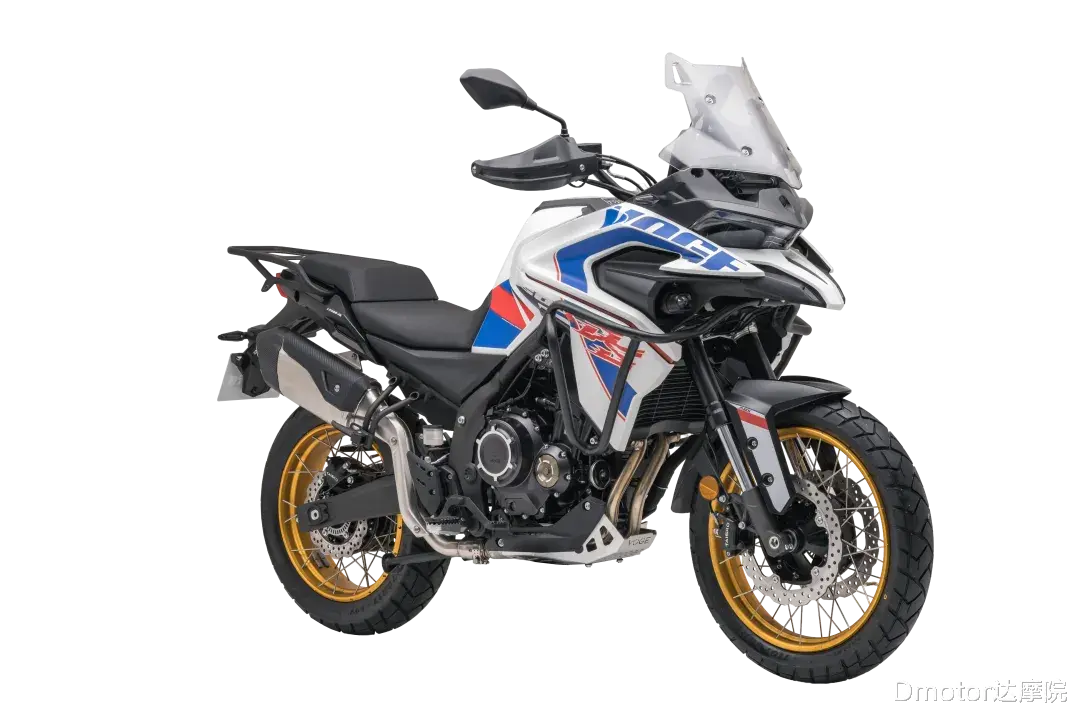 鸟嘴式前脸、立体油箱线条、外露式护杠结构,再加上19/17 英寸前后轮组合,让它一眼就能被识别为偏向实用与通过性的ADV车型,而不是偏街道风格的“高坐姿街车”。