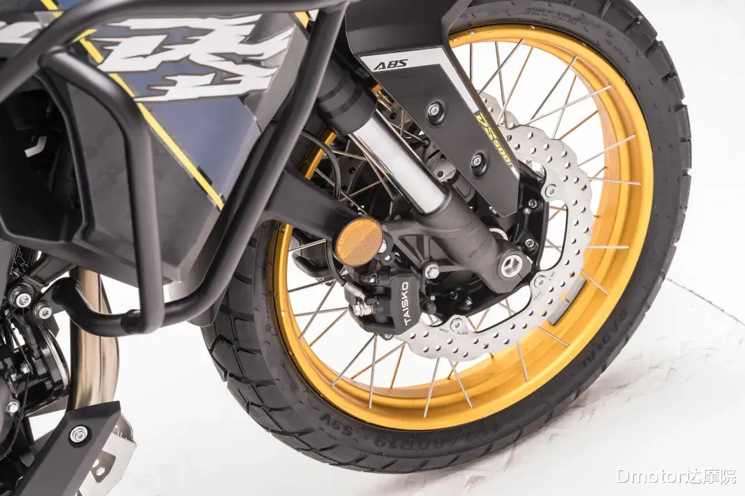 而轮胎方面,首先轮毂采用前19后17寸的外嵌式辐条轮毂,搭配的轮胎为正新的全地形轮胎!