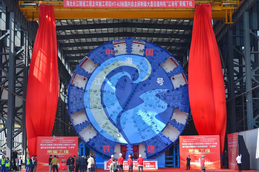 今天是10月的最后一天,传来了一则振奋人心的消息,我们自主研发,拥有完全自主知识产权、拥有多项新技术的超大直径盾构机“江海号”在湖南长沙下线了,目前它将应用于海太长江隧道的施工。它的最大挖掘直径为16.64米,重约5000吨,整机长约145米,高度大概在5-6层楼高。 海太长江隧道是中国目前在建的最大直径、最长距离穿越长江的公路盾构隧道,位于苏通大桥下游海门与太仓间汽渡附近,规划中的崇海大桥上游,北接南通海门,南连苏州太仓、常熟,海太长江隧道断面直径达16米,全长约11185米号,称万里长江第一隧道,复杂地层条件下,长距离、大直径、高水压掘进施工风险控制要求高,现在有这大国重器的加持,必将在这重要的工程中发挥巨大的作用。 目前直径超过14米及以上的盾构机被誉为大国重器,我们成功研发出并下线了16米直径的盾构机,标志着我们超大直径盾构器实现了新突破,在国际地位上又增添了浓厚的一笔。