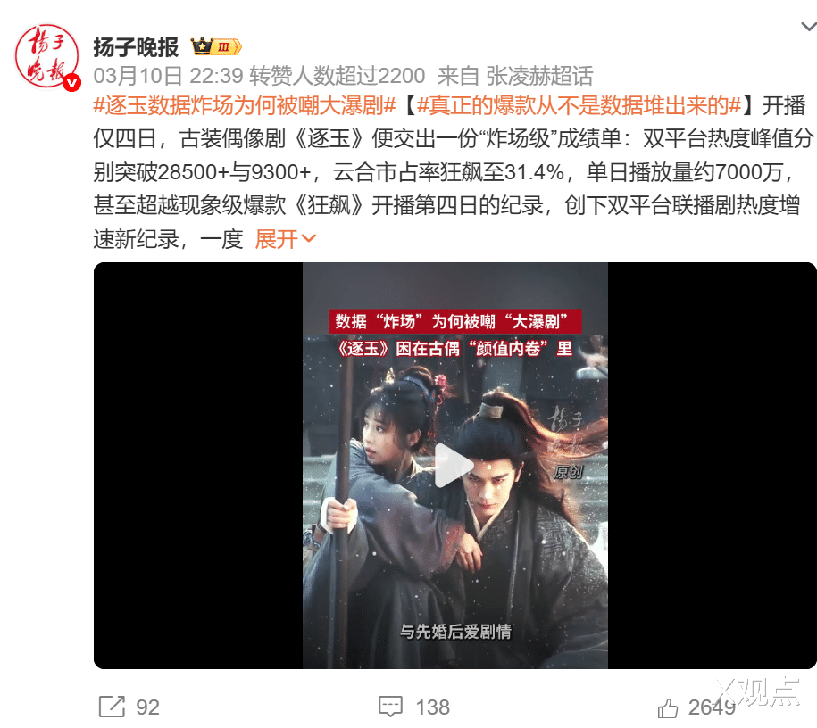 《逐玉》的数据闹剧终会过去,但它留下的思考不应停止。