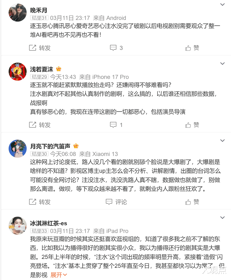 当“注水剧”剥夺了观众评价作品的权利,当数据游戏取代了艺术创作的真实反馈,行业寒冬的本质其实是信任关系的瓦解。这不仅仅是《逐玉》的问题,这是整个行业必须面对的生死考题。