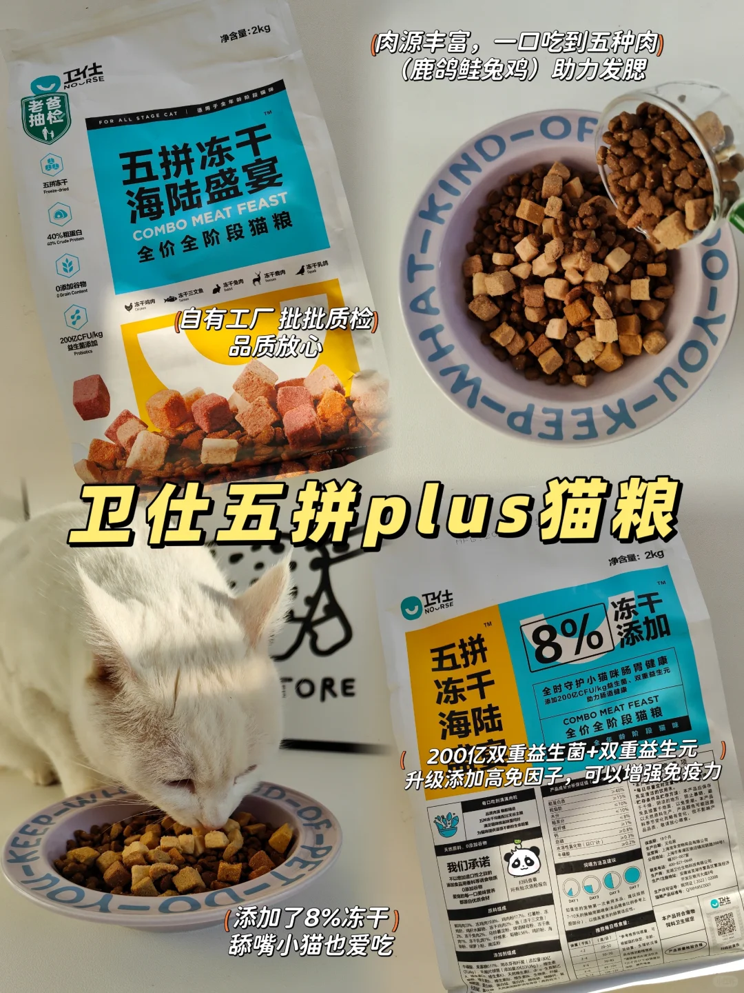 分享几款好吃的~都是我家小猫敲爱次的~~ [星R一只喜欢哇噻主食全价冻干 [星R]善待全价主食餐包 [星R]卫仕五拼plus猫粮 [星R]四月名鸡丝奶椰椰罐头