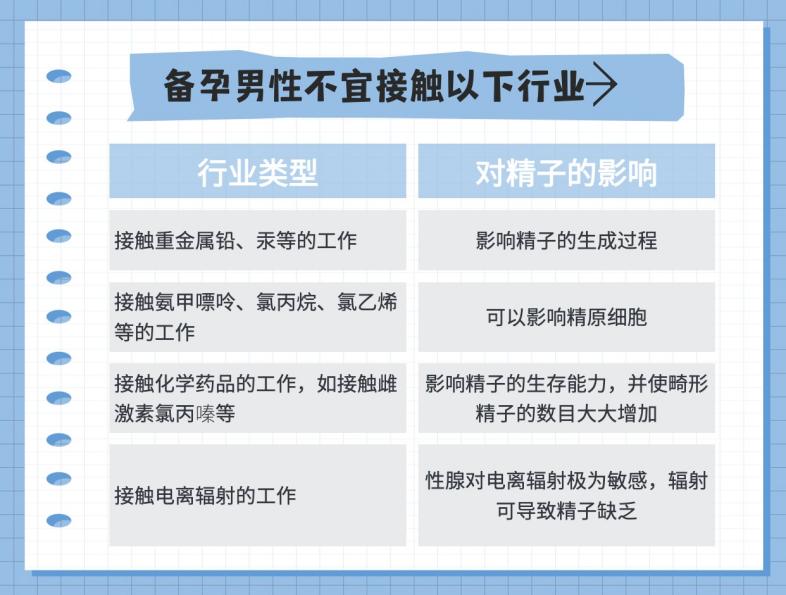 4、远离“伤精”的行业科学研究发现,男性在接触某些农药后,可使精子细胞内的脱氧核糖核酸(DNA)发生微妙变化,其妻子怀孕后的流产现象比一般人多,并有可能导致后代精神异常。