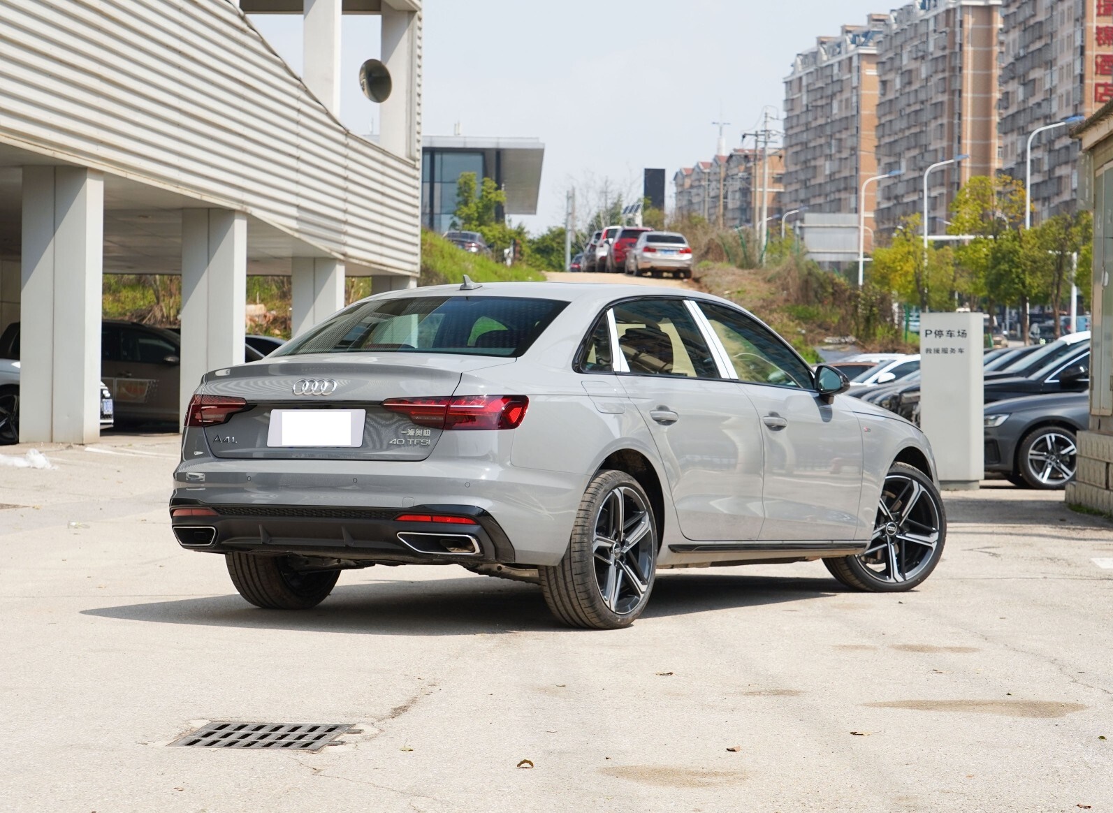 我们首先来看新车的外观设计方面,奥迪A4L延续了品牌标志性的六边形进气格栅设计,搭配矩阵式LED大灯组,前脸呈现出强烈的视觉冲击力与科技感。灯组中央有着细长的黑色饰条连接,下方大面积的中网内部有着蜂窝状格栅镶嵌,整体外扩的造型结合保险杠两端熏黑饰板镶嵌的进气口设计,整体黑化的视觉效果很明显,保险杠底部突出的棱角运动套件以及中央的进气格栅,整体的运动氛围更加的浓郁。