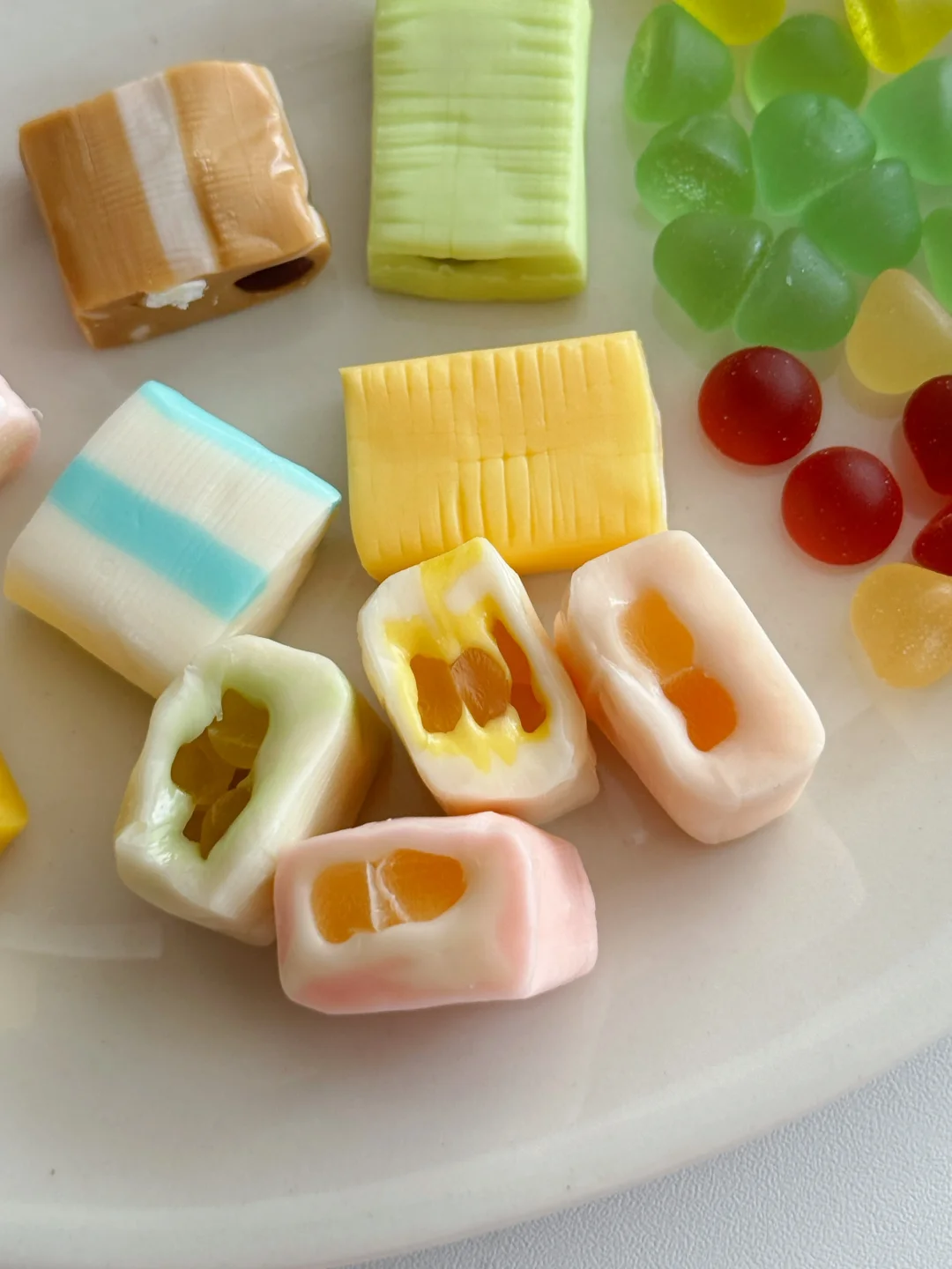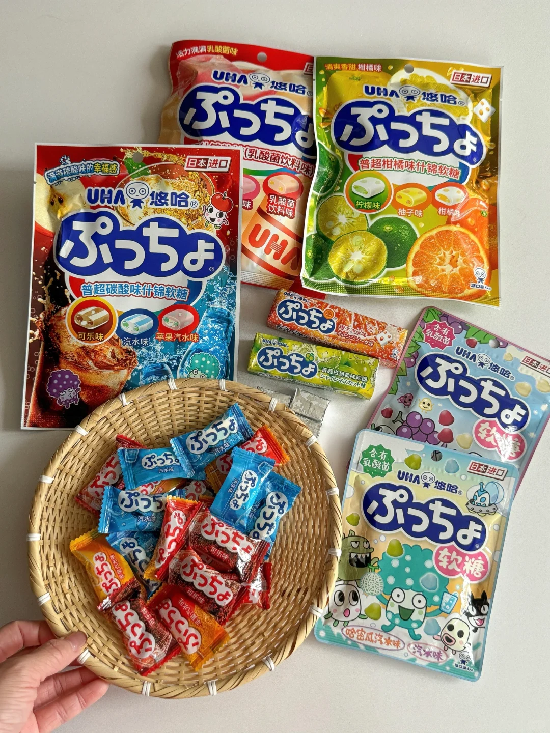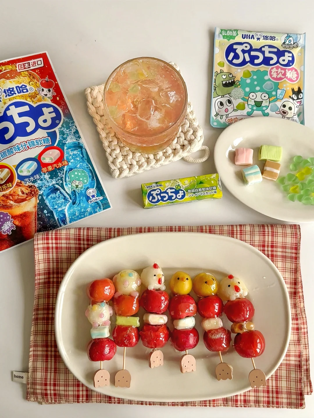 糖果叠加糖葫芦的感觉好奇妙✨,这次用的都是悠哈的普超什锦软糖,可以选择的口味真的敲级多,每个口味都好想吃啊!轫轫的软糖里包入了q弹有嚼劲的橡皮糖颗粒,大糖包小糖真的很有特色耶,双重口感的叠加吃起来真的好奇妙啊!碳酸口味中更有碳酸感满满的木糖醇片,每嚼一口都像在喝汽水🥤。独立包装携带就很方便,平时放几颗在包里,嘴馋的时候就来上几颗!