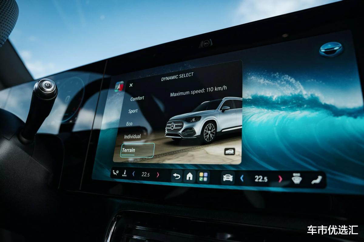 这外观无非就是更好看了,可我想奔驰GLB EV的重点在于,它的座舱终于有了奔驰该有的水平。这种带触控的蜻蜓造型三辐式方向盘,跟奔驰S级这样的旗舰没有区别,我个人觉得应该是最近三代奔驰设计里最好看的版本。而比起这样的方向盘,一字排开的三联屏才是舱内最吸引人的,它们全部在同一平面结构下打造,三块独立屏幕连同两侧的引擎式出风口,看上去都有科技感且高级。再把满布出风口、副仪表台、门板等区域的氛围灯一打开,它这档次感跟在售的奔驰E级也有得一拼。