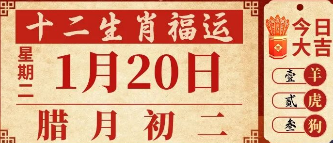 2026年1月20日,星期二,农历腊月初二 (乙巳年己丑月甲午日),法定工作日。