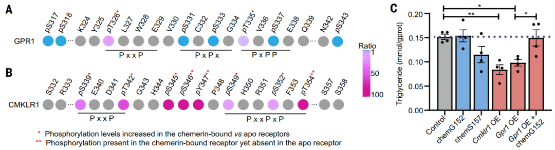 图5. GPR1/CMKLR1 的磷酸化模式与脂质代谢调控