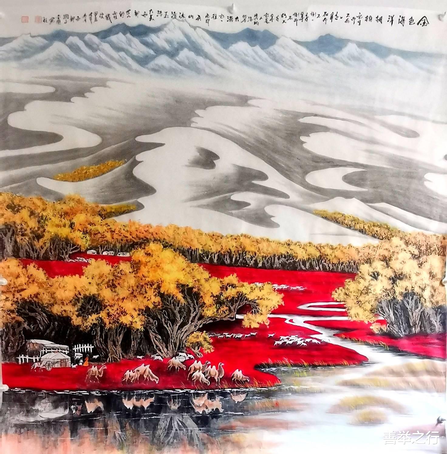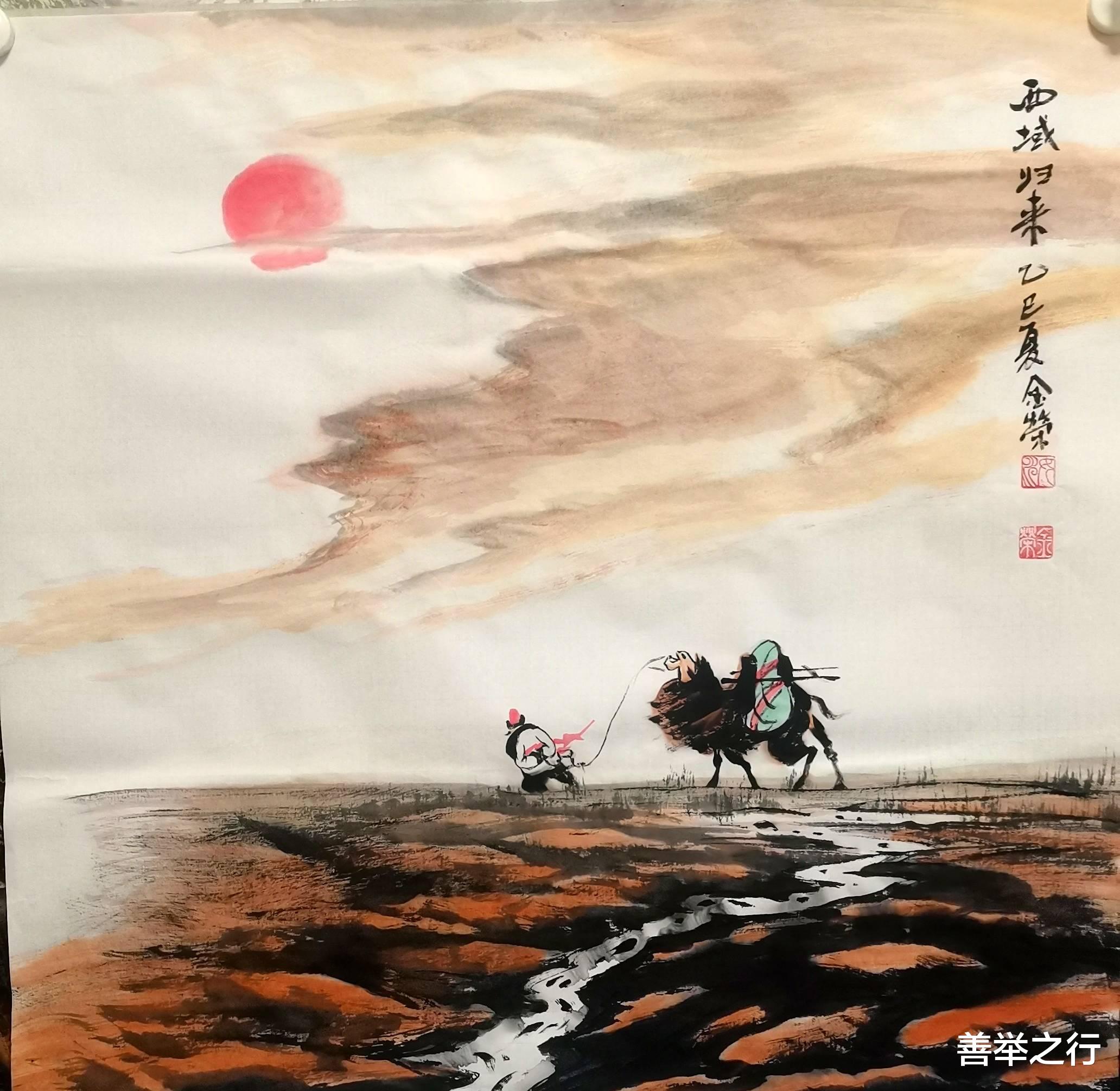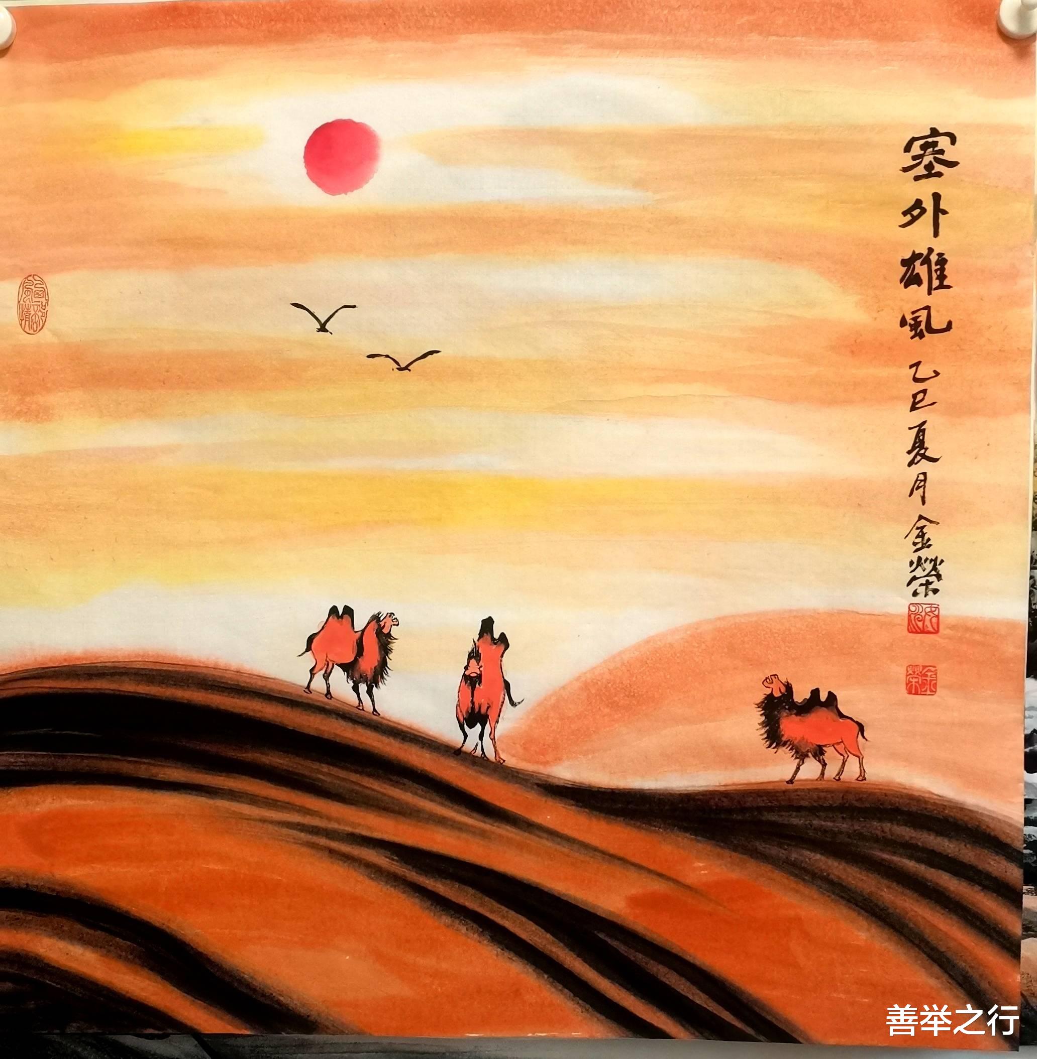 汝金荣老师绘画作品《《塞外风情 》》赠给队长蒋晓亮