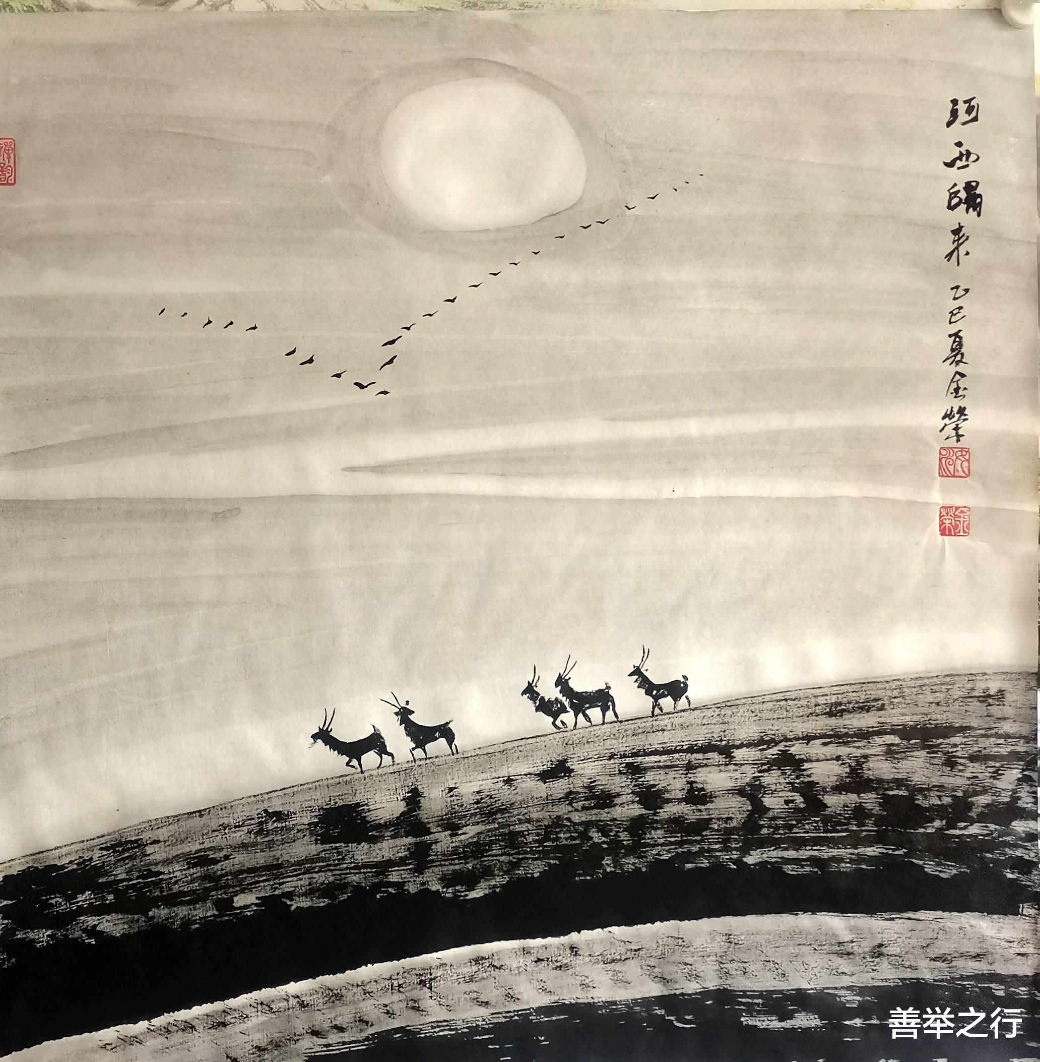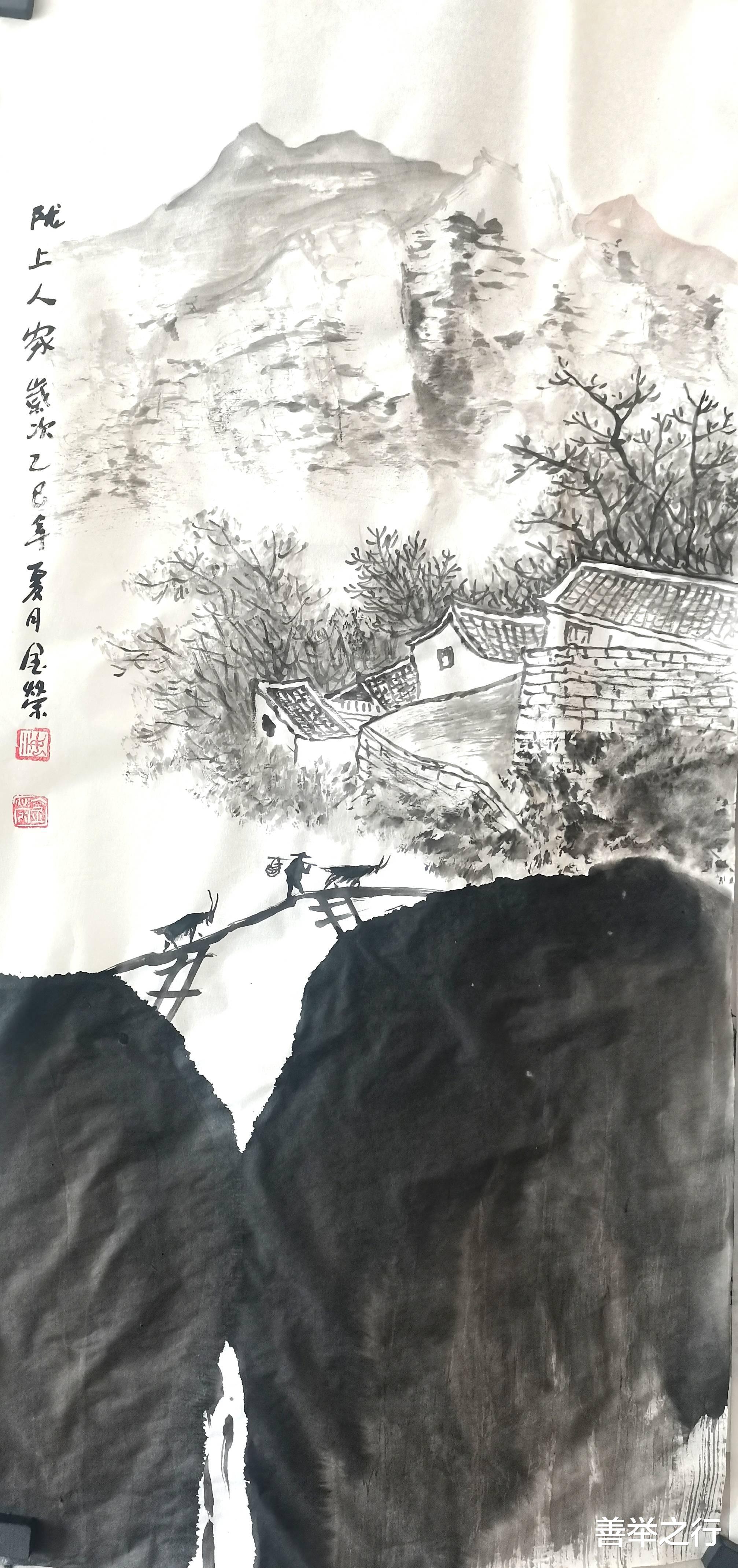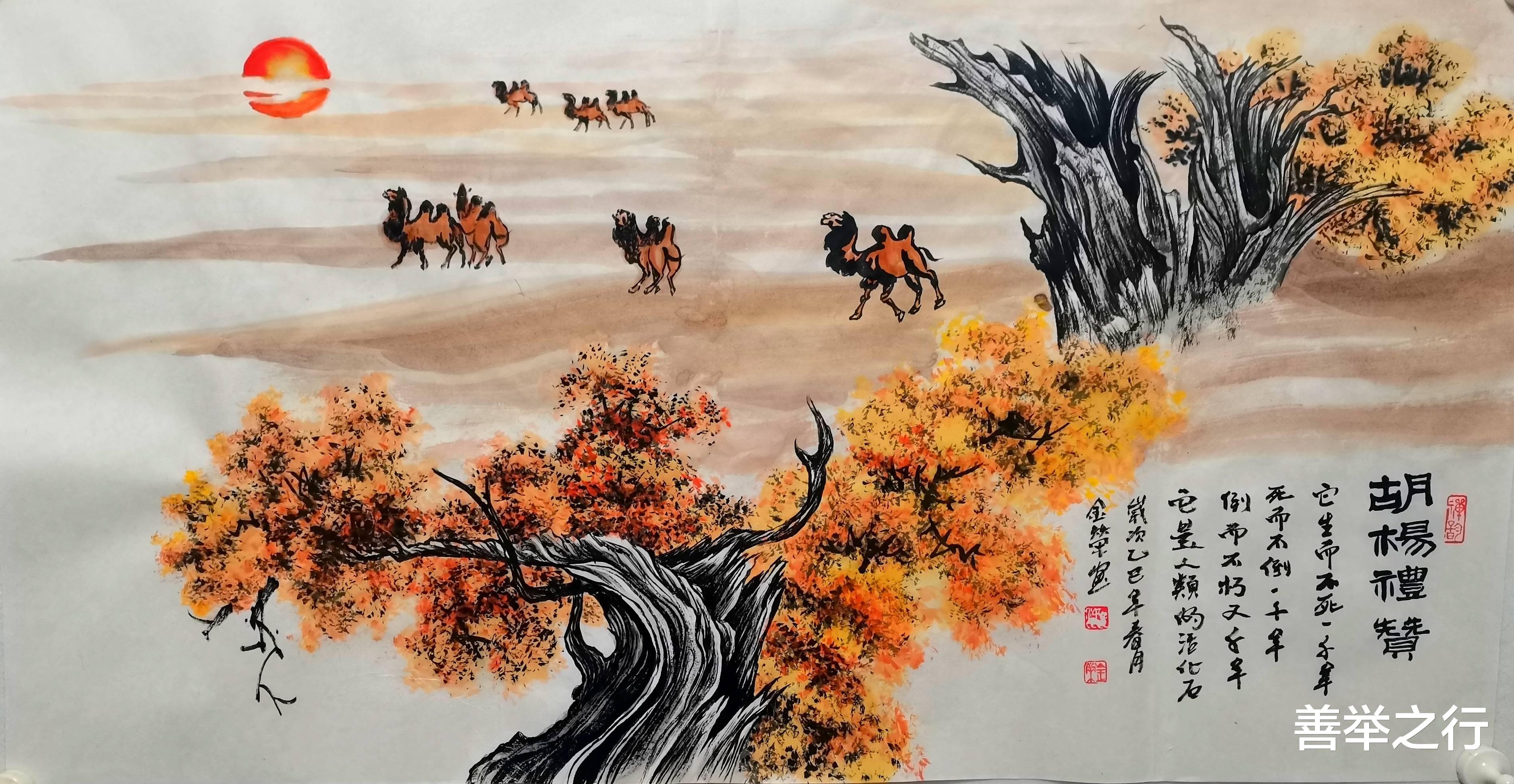 汝金荣老师绘画作品《《塞外风情 》》赠给队长蒋晓亮
