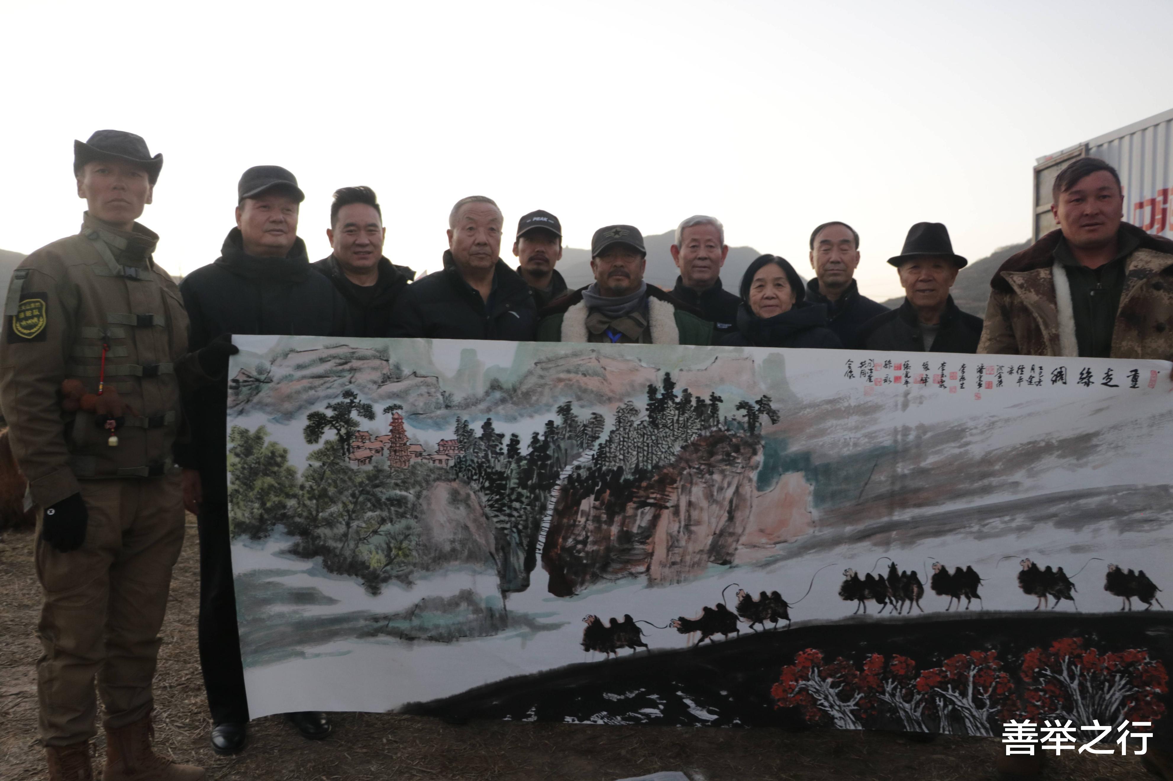 南山书画院的老师们棈心共同创作八尺绘画作品《重走古丝绸之路 》赠给队长蒋晓亮
