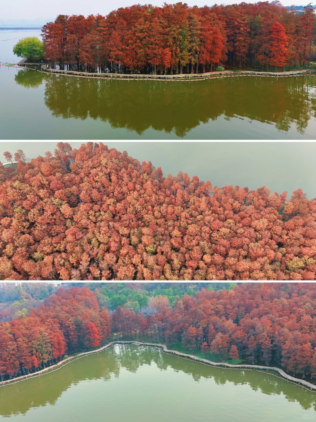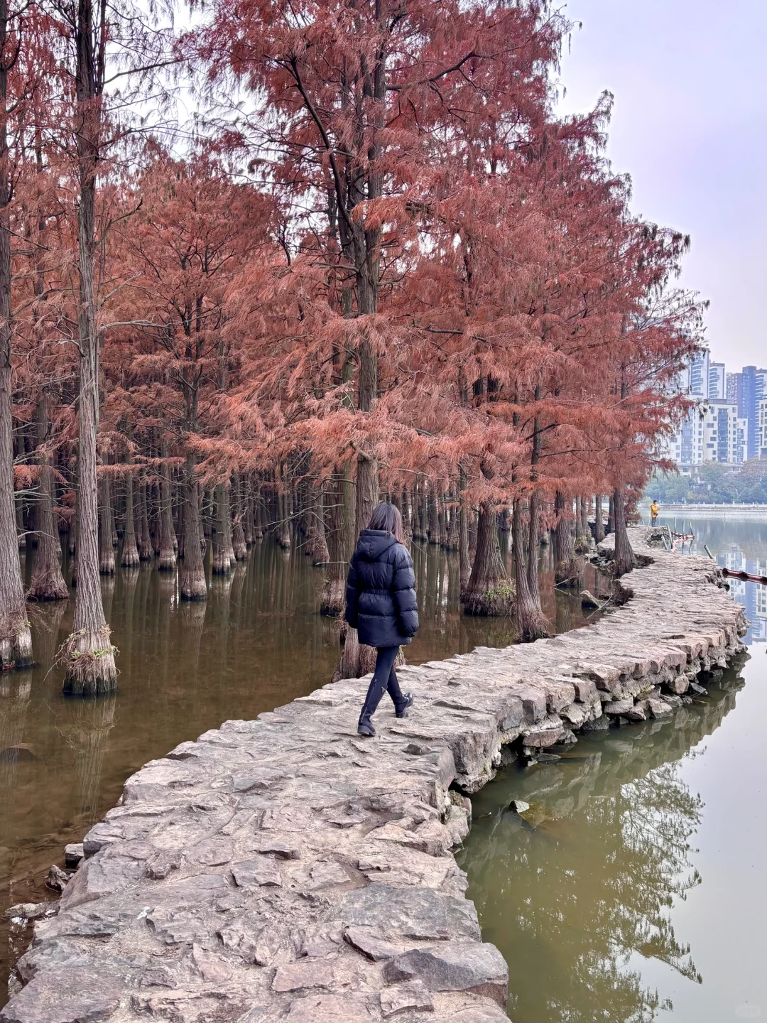 在武汉‼️冷门公园旁的红衫林已全红!没人冲!